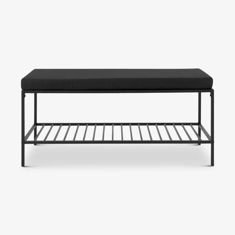 Pingi polsterdatud iste tagab mugavuse, samal ajal kui allosas paiknev tugev metallvõrest riiul pakub rohkelt hoiustamisruumi jalanõudele, kottidele või teistele tarvilikele esemetele. See muudab pingi suurepäraseks valikuks kodudes, kus väärtustatakse korrastatust ja multifunktsionaalseid lahendusi.