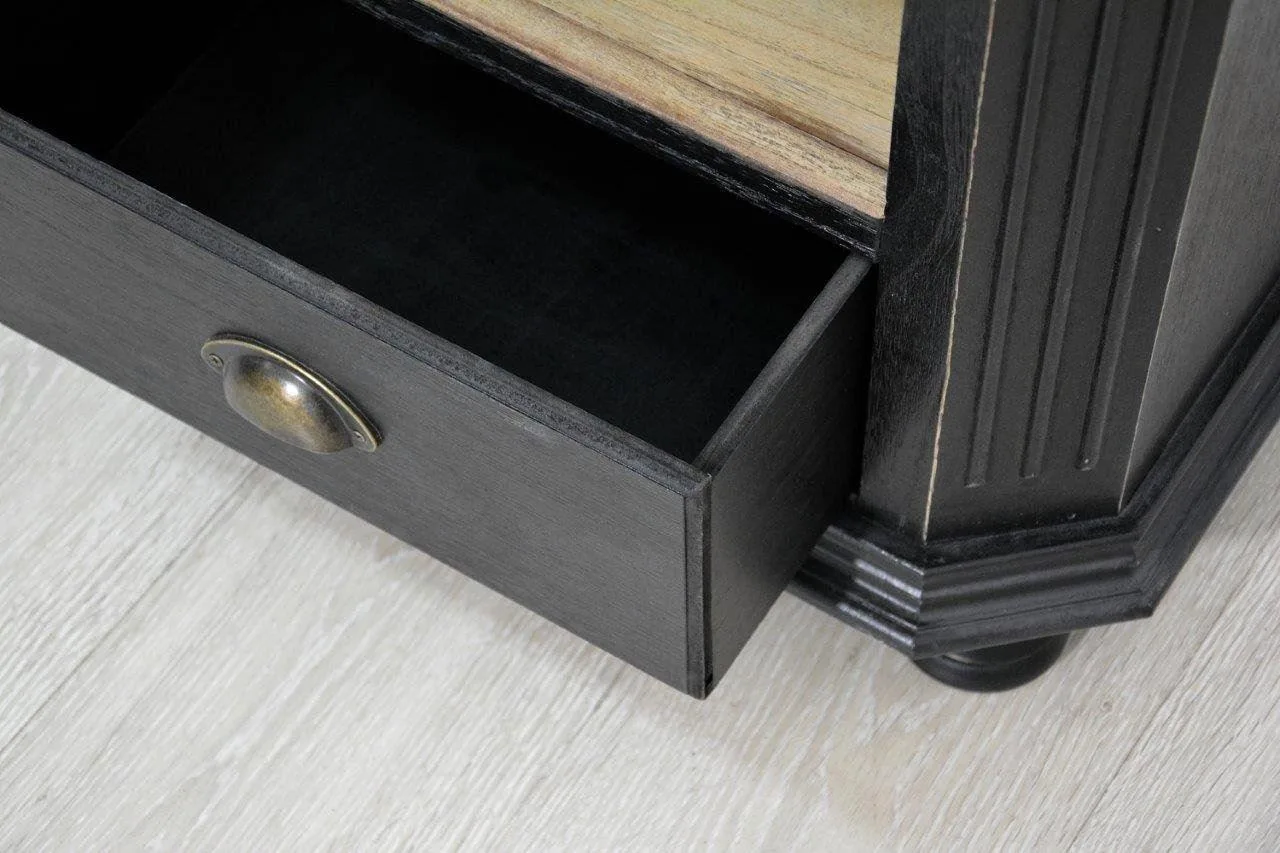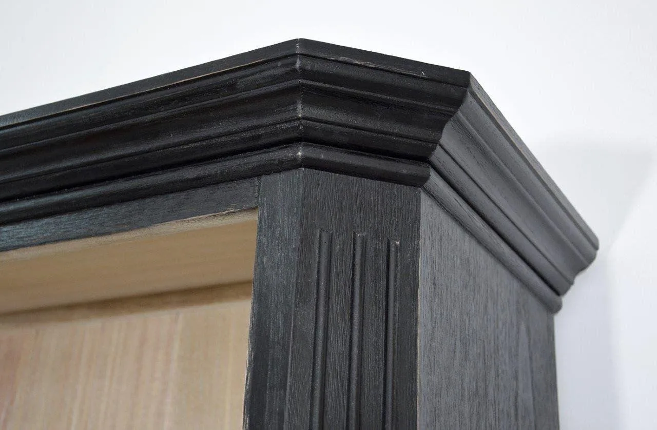 Cesena CE02 raamatukapp kodukontorisse. See stiilne ja klassikalise disainiga raamatukapp toob teie tööruumi elegantsi ja funktsionaalsust. Raamatukapi sirged jalad ja dekoratiivsed metallist käepidemed, mis on pronksitoonis, lisavad sellele isikupära. Must, poolmatt korpus koos kulumise jälgedega ning freespindadega ääred, mis toob esile puidu struktuuri, muudab selle mööblieseme tõeliselt silmapaistvaks.