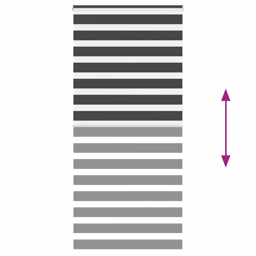 See must sebra ruloo aitab lihtsalt juhtida ruumi valgust ja privaatsust, sobides hästi elutuppa, magamistuppa või kontorisse. Kahekihiline triibuline kangas vahelduvate läbipaistvate ja läbipaistmatute ribadega võimaldab muuta akna katvust poolläbipaistvast kuni peaaegu täieliku pimenduseni. 100% polüesterkangas ja alumiiniumist ülemine siin tagavad vastupidavuse ning lihtsa hoolduse.
