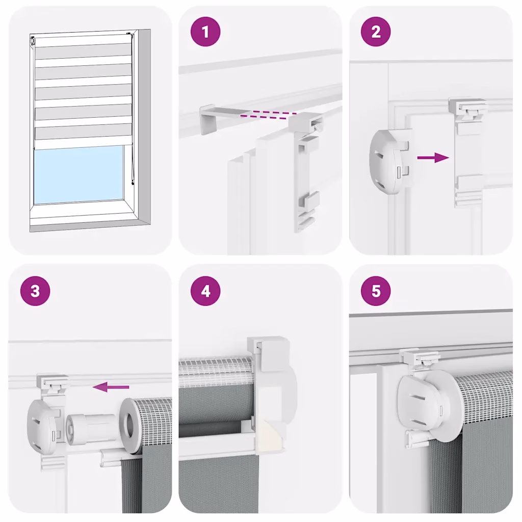• Paigaldus ilma puurimiseta: kinnitusklambrite abil on võimalik ruloo kinnitada aknaraami külge ilma puurimiseta, sobides aknaraamidele paksusega umbes 0,5–2,5 cm.
