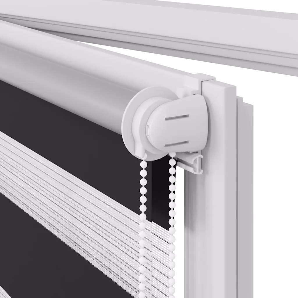 - Kahekihiline sebrakangas läbipaistvate ja läbipaistmatute triipudega võimaldab valguse ja vaate reguleerimist lihtsalt ruloo asendit muutes.