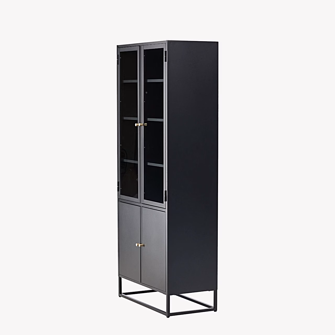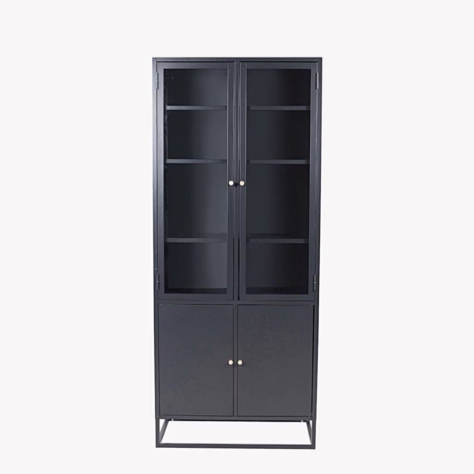 Bakal on kõrge must terasest vitriinkapp, mis ühendab läbimõeldult avatud ja suletud panipaiga. Ülemised klaasustega uksed loovad kerge ja õhulise mulje, kus saad stiilselt eksponeerida oma klaase, raamatuid või lemmikdekoori. Alumiste täisuste taga saad hoida kõike seda, mida Sa ei soovi pidevalt nähtaval hoida – nõud, dokumendid, kodukontori tarvikud või muu igapäevase kraami. Tänu minimalistlikule joonele ja elegantselt mustale viimistlusele sobib Bakal kapp suurepäraselt nii põhjamaise kui ka modernse sisekujundusega koju, kööki, elutuppa või kontorisse.