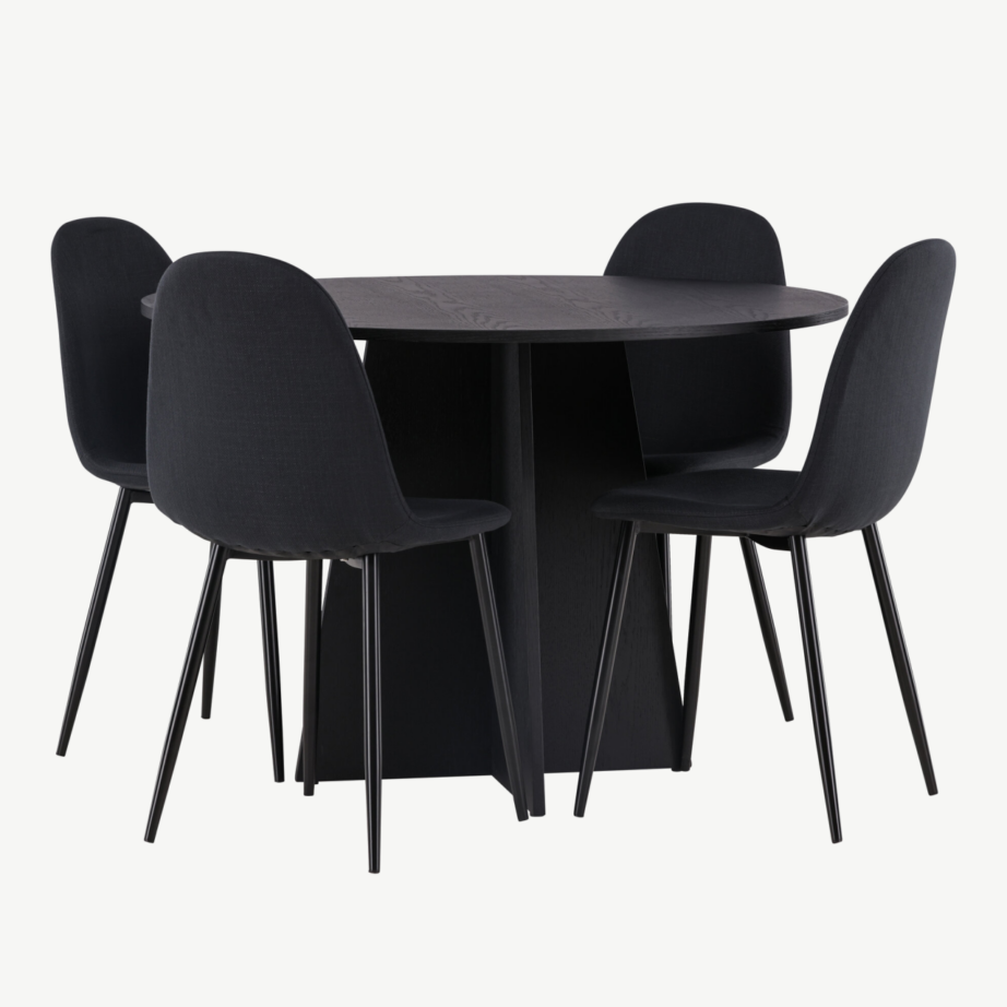 Bootcut ümmargune söögilaud Polar toolidega – must