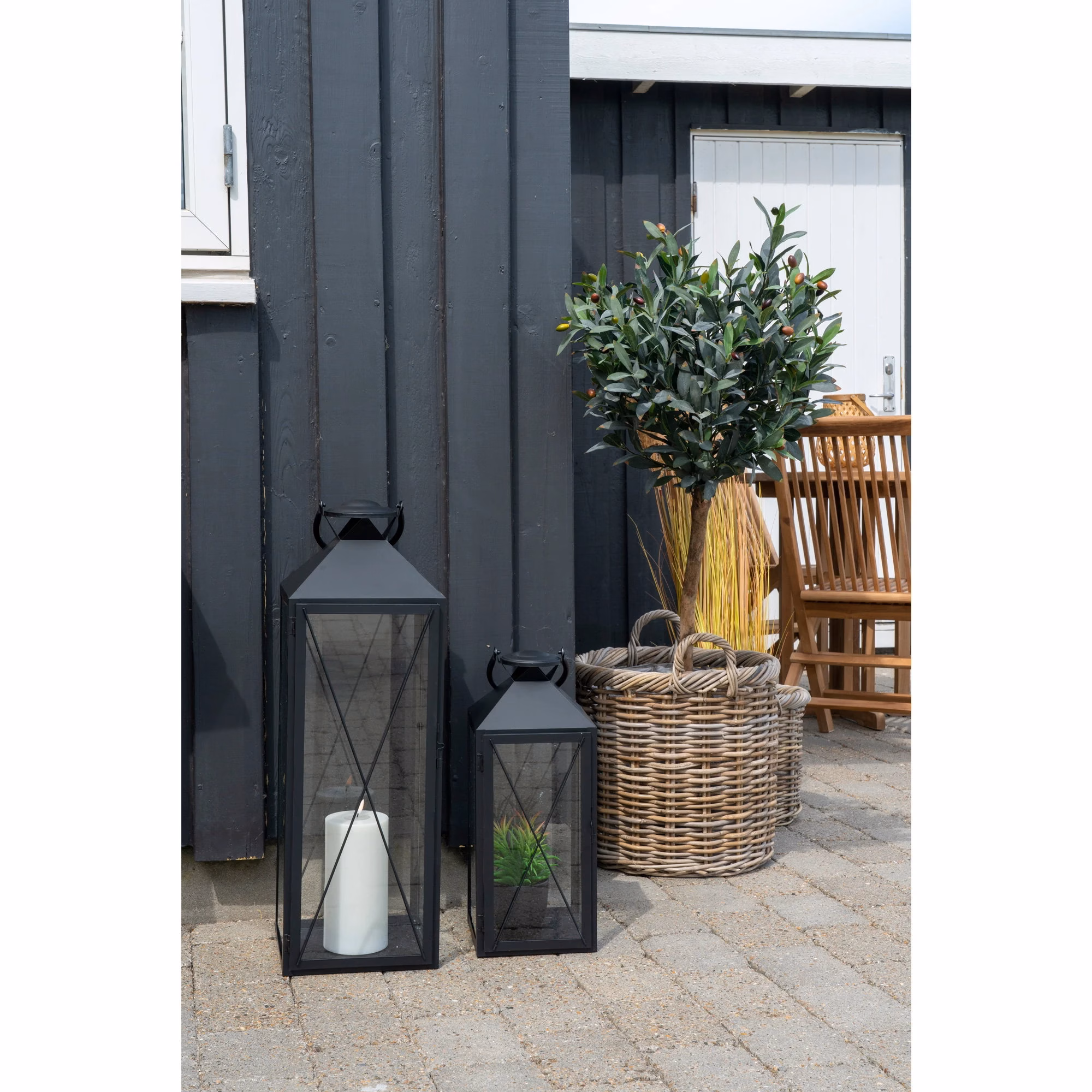 Casa laternakomplekt koosneb kahest mustast terasest ja klaasist aialaternast, mis loovad hubase küünlavalgel meeleolu. Erineva suurusega laternad aitavad luua astmelise ja pilkupüüdva kompositsiooni aias, terrassil või rõdul. Klaaspaneelid lasevad valgusel hästi paista, samal ajal kui tugev raam hoiab küünla kindlalt paigal. Komplekt sobib nii igapäevaseks kasutamiseks kui ka pidulikumateks hetkedeks, kui soovid oma õueala või siseruumi dekoratiivselt välja valgustada.