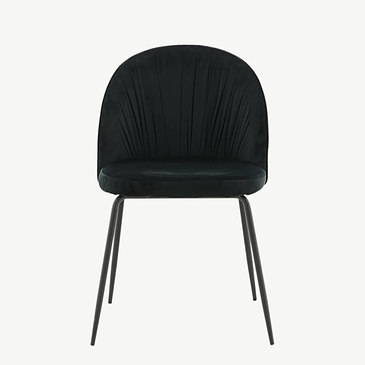 Must samet söögitool Wrinkles ühendab mugavuse ja elegantse disaini, sobides ideaalselt igasse moodsasse interjööri. Selle tooli ümar seljatugi ja iste on rikkalikult polsterdatud ning kaetud kortsulise musta polüester-sametkangaga, mis loob luksusliku ja kutsuva üldmulje. Vertikaalsed õmblused lisavad toolile kaasaegset ilmet ja isikupära.