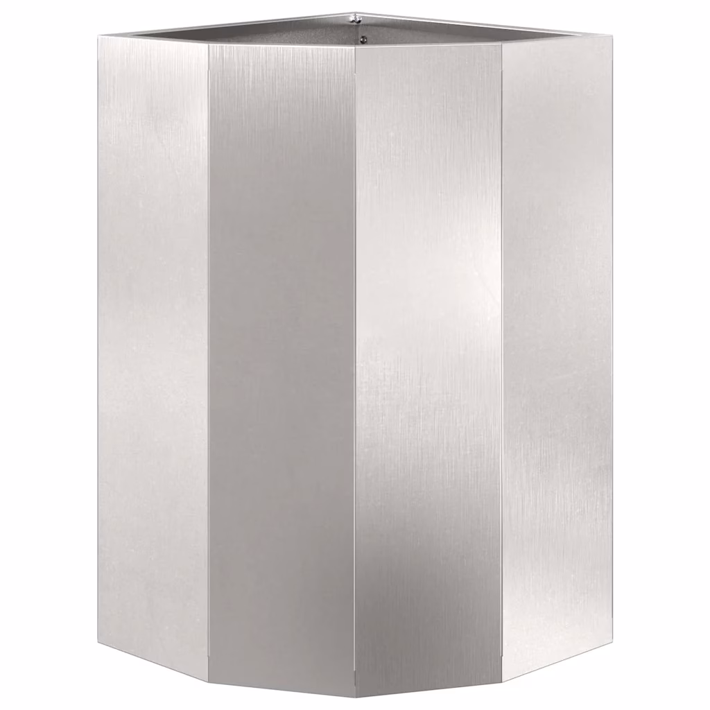 See hõbedane nurga istutuskast on praktiline lahendus aia, terrassi või rõdu nurkade ärakasutamiseks. Roostevabast terasest konstruktsioon sobib hästi välitingimustesse ning minimalistlik sile viimistlus lisab välisruumile modernse ilme, mahutades samas rohkelt taimi.