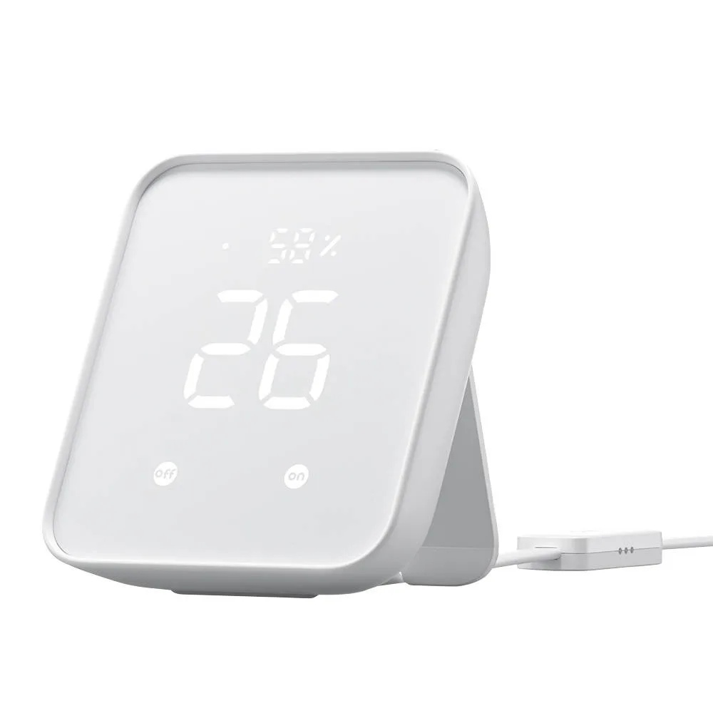 SwitchBot Hub 2 nutikas juhtimispaneel sisaldab ülitäpset temperatuuri- ja niiskuseandurit, mis mõõdab temperatuuri vahemikus -20 °C kuni 80 °C ning niiskust 0–99%. Suur LED-ekraan kuvab selgelt kõik näidud ning automaatselt reguleeritav heleduse tase tagab hea nähtavuse igas valguses. Temperatuuri ja õhuniiskuse jälgimine on kiire ja mugav.