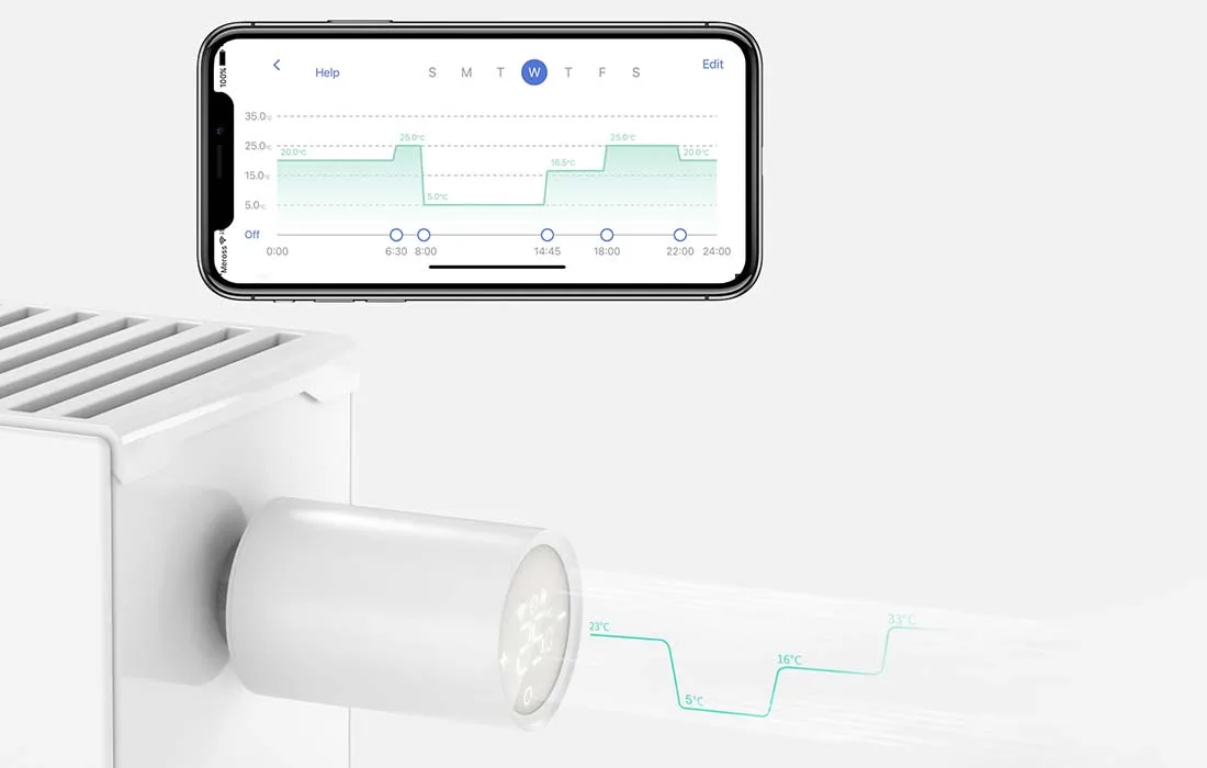 Nutikas radiaatoritermostaat võimaldab hõlpsalt reguleerida kodu soojust, aidates säästa energiat ning rahakotti. Komplekt sisaldab termostaati ja vajalikku nutihubi, mis teeb võimalikuks seadme ühendamise erinevate nutikodu süsteemidega, nagu Apple HomeKit, Google Assistant, Amazon Alexa ning Samsung SmartThings.
