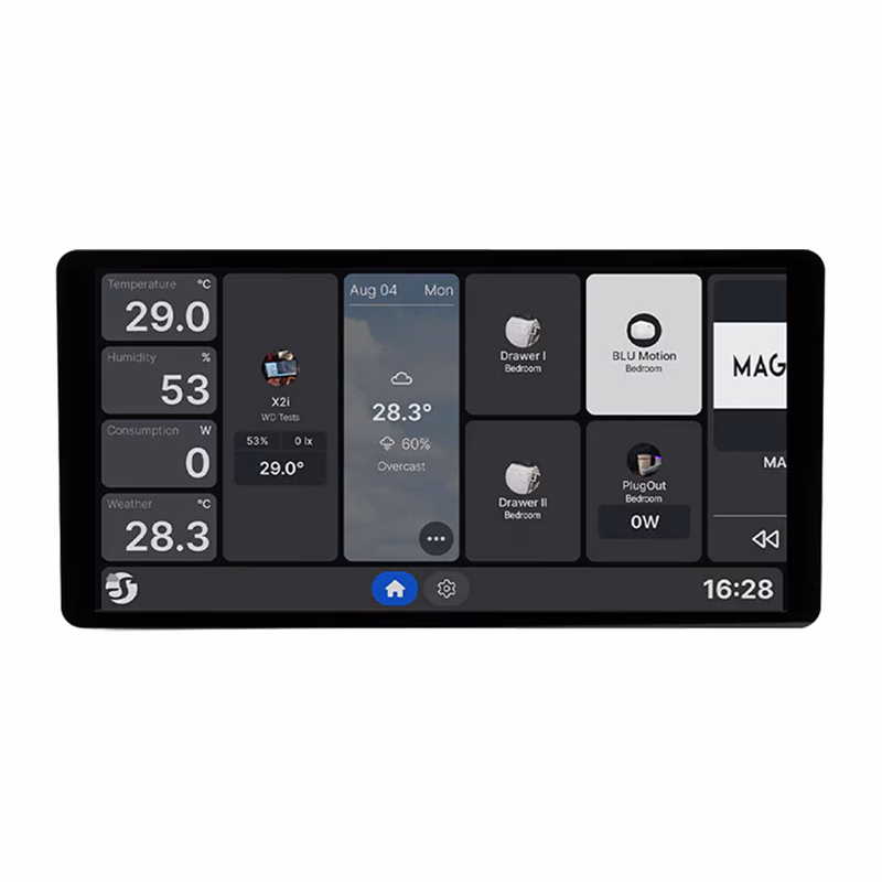 Seinale paigaldatav juhtpaneel koondab nutikodu valgustuse ja seadmete juhtimise ühele 6,95‑tollisele puuteekraanile. Sisseehitatud 5 A relee juhib üht vooluringi, Wi‑Fi 6 ja BT 5.0 tagavad ühenduse. Ühilduvus Home Assistanti, Google Home’i ja Alexaga ning toide 100–240 V või USB‑C.