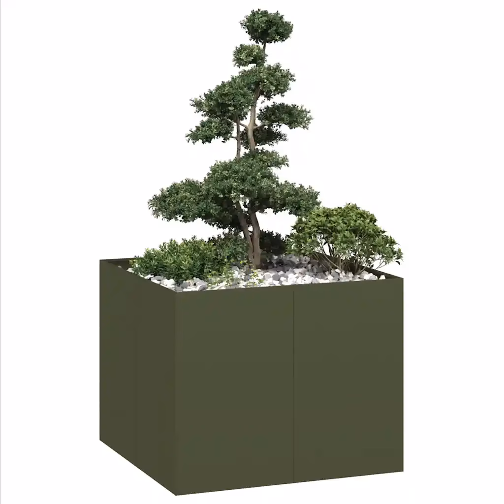 Komplektis on üks oliiviroheline külmvaltsitud terasest istutuskast mõõtmetega 100 x 100 x 80 cm, millel on avatud põhi ja mis vajab kokkupanekut.