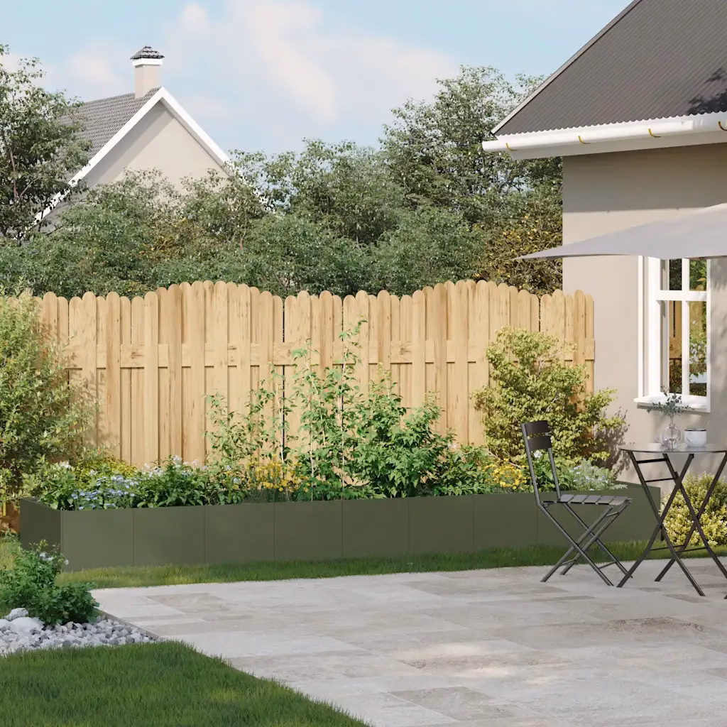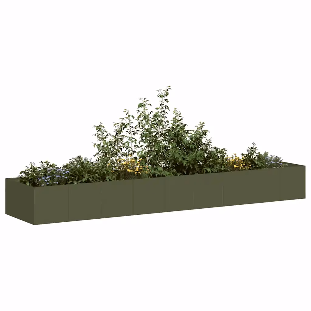 • 1 x oliiviroheline külmvaltsitud terasest aia taimekast mõõtudega 360 x 80 x 40 cm avatud põhjaga konstruktsiooniga