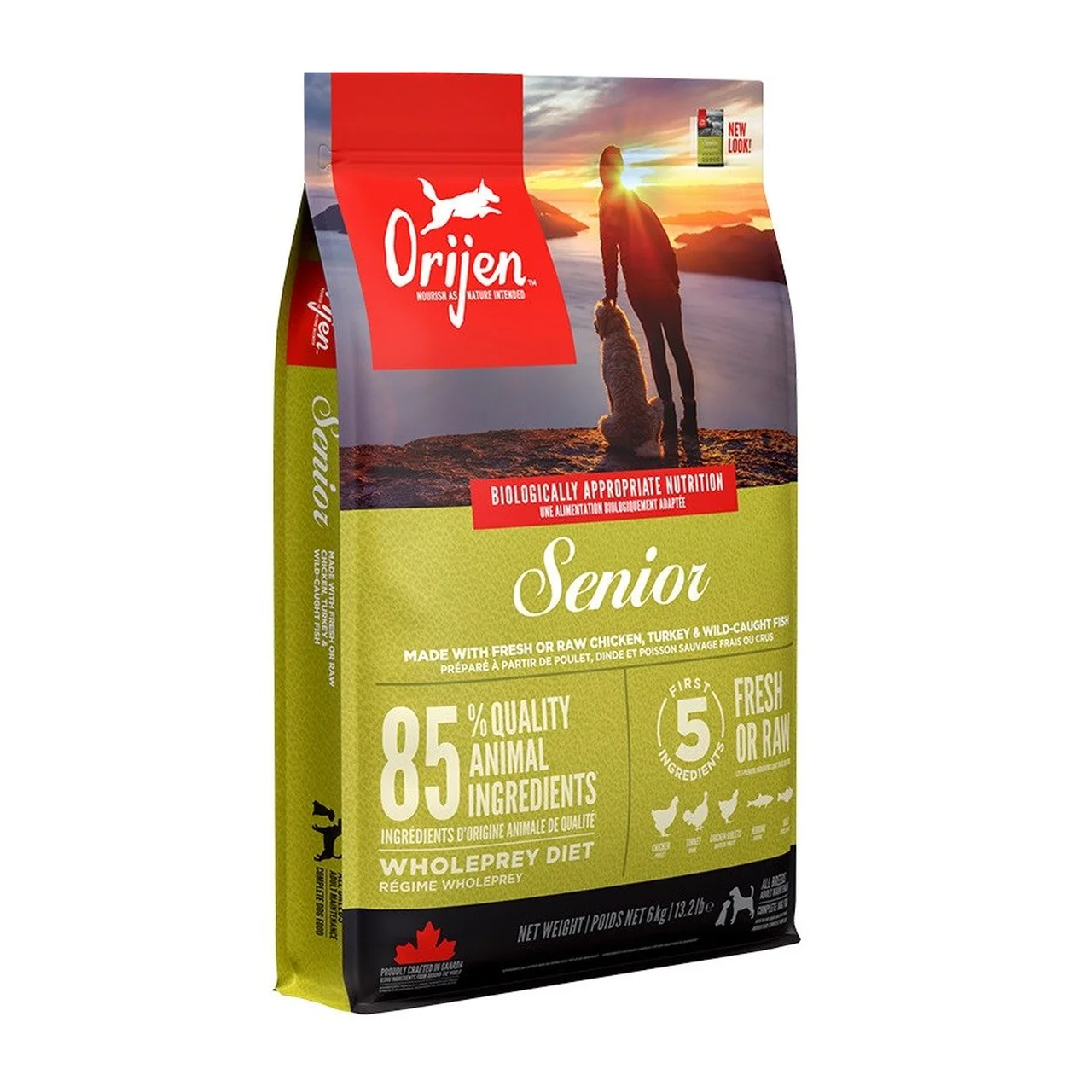 Orijen Senior 6 kg kuivtoit on spetsiaalselt välja töötatud eakate koerte toitainete vajaduste jaoks. Tänu kõrgele loomse valgu sisaldusele toetab see toode vitaalsust ning aitab aeglustada vananemisest tingitud muutusi. Tegemist on tasakaalustatud, gluteeni- ja teraviljavaba täissöödaga, mis sobib igat tõugu eakale koerale ning vastab ka tundlikuma seedimisega lemmikute vajadustele.
