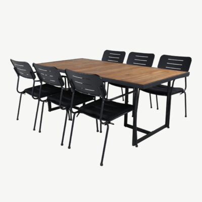 Avasta põhjamaise joonega kaasaegne õuemööblikomplekt Khung, mis koosneb suurest ristkülikukujulisest söögilauast ja kuuest Bois käetugedega söögitoolist. See akaatsiapuidust õuesöögikomplekt on loodud nii pereõhtusöökideks kui ka suvisteks aiapidudeks, tuues Sinu aeda ajatut elegantsi ja mugavust. Komplekti stiilne ning lihtne vorm sobitub igasse väliruumi ja pakub parimat elamust igal aastaajal.