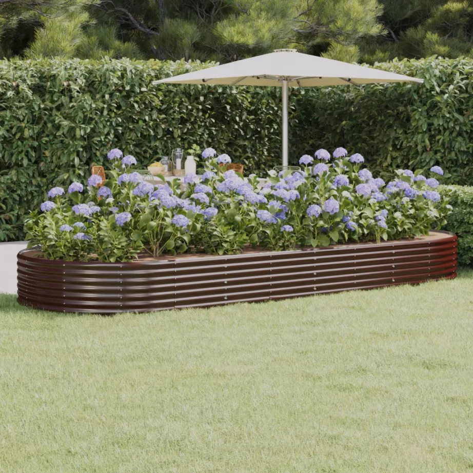 See pruun ovaalne galvaniseeritud terasest taimekast pakub rohkelt ruumi taimede kasvatamiseks ning loob aiaruumi selge, korrastatud istutusala. Vali see mudel, kui vajad jätkusuutlikku ja ilmastikukindlat taimekasti, mis sobitub lihtsalt erinevate aia- ja terrassilahendustega.