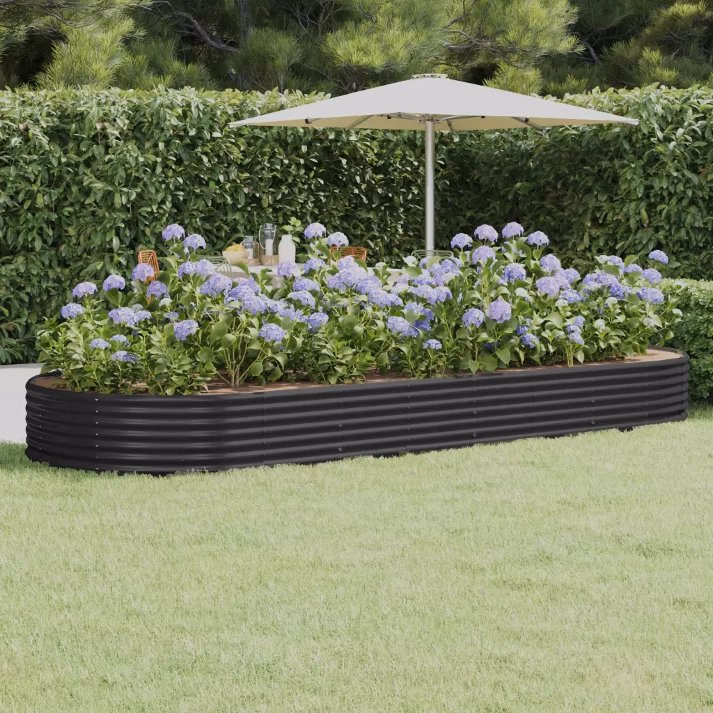 See ovaalne galvaniseeritud terasest aia taimekast aitab luua selge ja korrastatud istutusala aias, rõdul või verandal. Tänu ilmastikukindlale pulbervärvitud viimistlusele ja suurele istutussügavusele sobib see hästi köögiviljade, ürtide ja lillede kasvatamiseks, pakkudes taimedele rohkem mulda ja kasvuruumi.