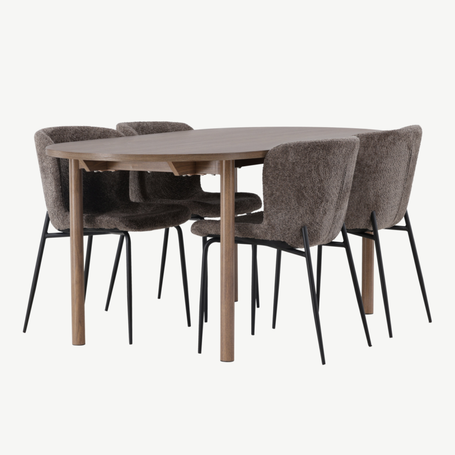 Muudke oma söögituba stiilseks ja hubaseks Modesto ovaalse söögilauakomplekti abil, mis ühendab põhjamaise disaini, kvaliteetsed materjalid ja vastupidavuse. Selle komplekti kuuluvad ovaalne Andy söögilaud ning Modesto sarja tumehallid bukleekangaga kaetud toolid. Ideaalne valik, kui soovite pakkuda perele ja külalistele meeldivaid ühiseid hetki modernses interjööris.