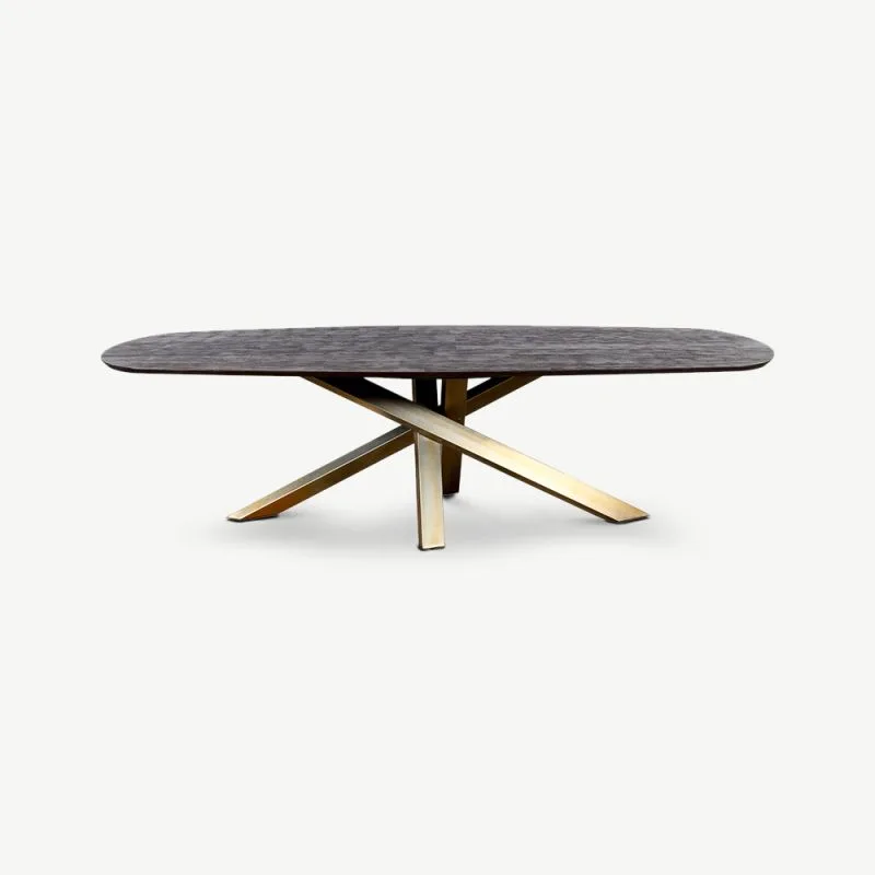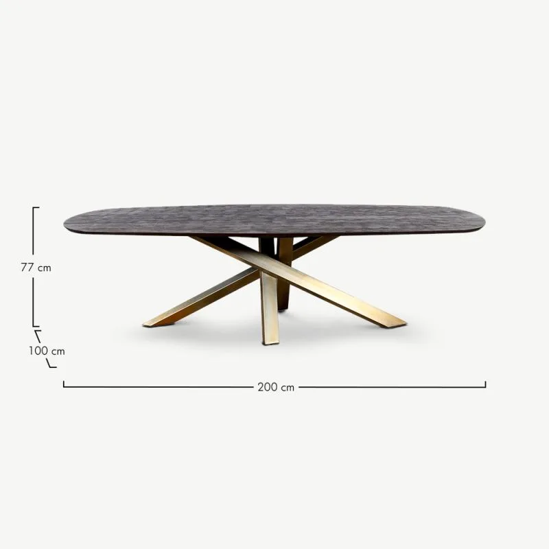 Söögilaud Adore, ovaalne, must mangopuu pealispind ja kullaviimistlusega skulpturaalsed jalad – Kaasaegne industriaalne disain