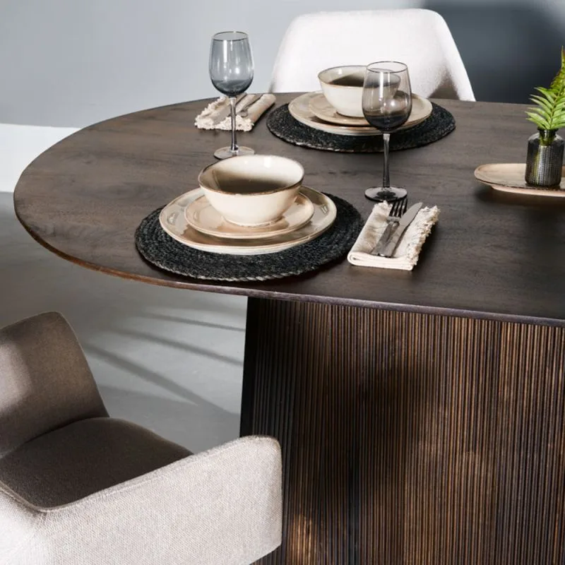 Tumepruun keskmine Saulo ovaalne söögilaud pakub elegantsi ja mugavuse kombinatsiooni, olles ideaalne lisa igasse ruumi. Looge stiilne ja mugav söögikoht ning lisage Saulo söögilaud, et nautida õhtusööki oma külalistega.