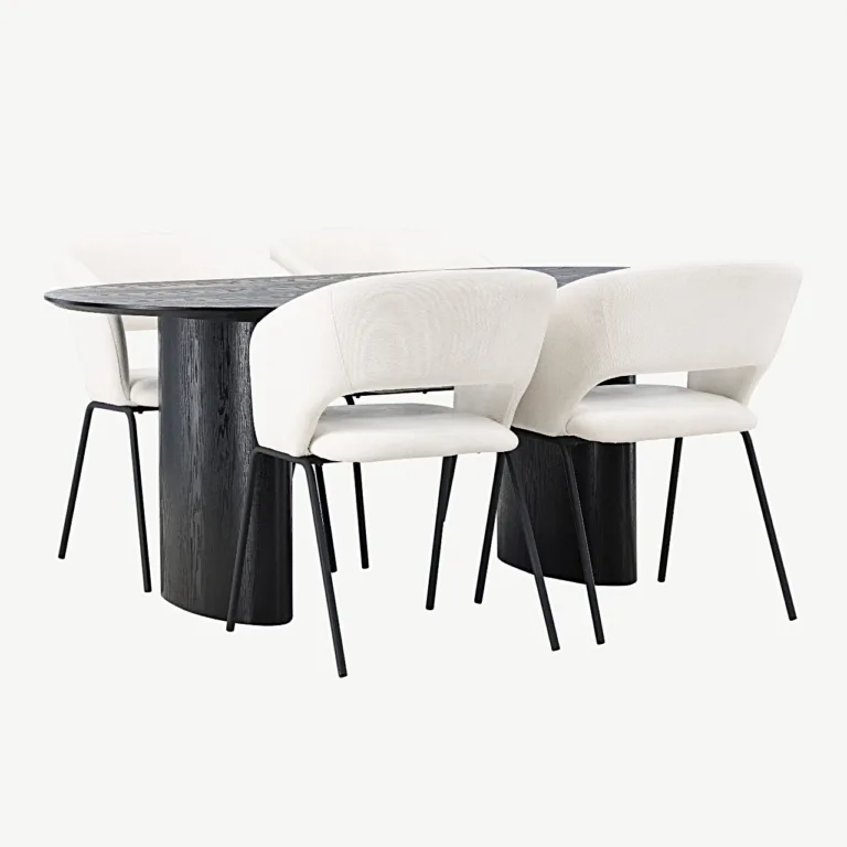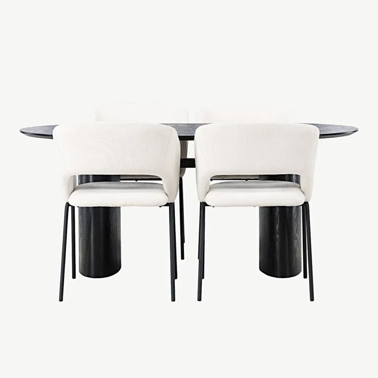 Isolde söögilaud ja Day polsterdatud toolide komplekt lisab igasse koju põhjamaist elegantsi ja luksuslikku mugavust. Moodne lahendus neile, kes hindavad ideaalset tasakaalu kaasaegse disaini, kvaliteetsete materjalide ning hubase õhkkonna vahel.