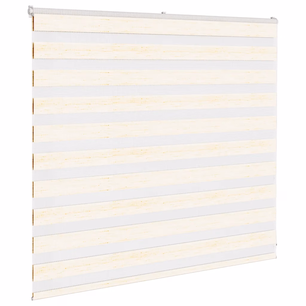 See marmorbeež päev-öö ruloo ühendab privaatsuse ja valguse juhtimise ühes lahenduses. Kahekihiline triibuline kangas vahelduvate läbipaistvate ja läbipaistmatute ribadega võimaldab muuta ruumi valguse poolläbipaistvast kuni täielikult pimedani. Mõõtudega 155 x 100 cm sobib ruloo hästi suurematele akendele elutoas, magamistoas või kontoris.