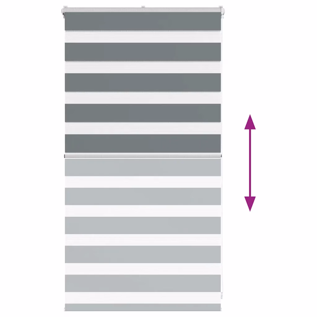 • Kahekihiline sebrakangas vahelduvate läbipaistvate ja läbipaistmatute ribadega võimaldab liigutada ruloosid poolläbipaistvast kuni peaaegu pimendavani.