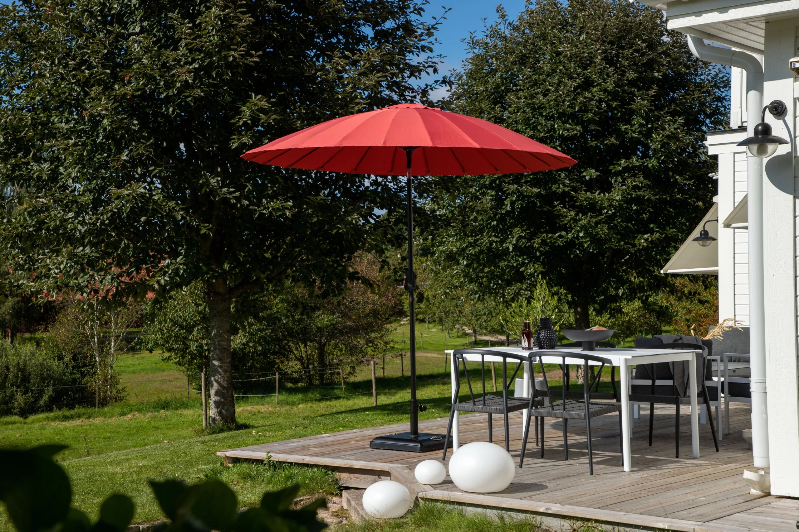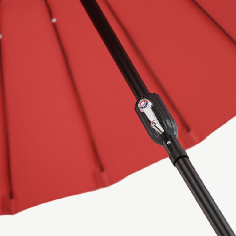 Olgu see hommikukohv terrassil või pärastlõunane puhkus aiatoolil – Päikesevari Palmetto tagab meeldiva varju ja lisab sinu õuealale stiili. Tänu oma ajatu disainiga kombinatsioonile mustast ja punasest sobib see suurepäraselt erinevate aiamööblikomplektidega.