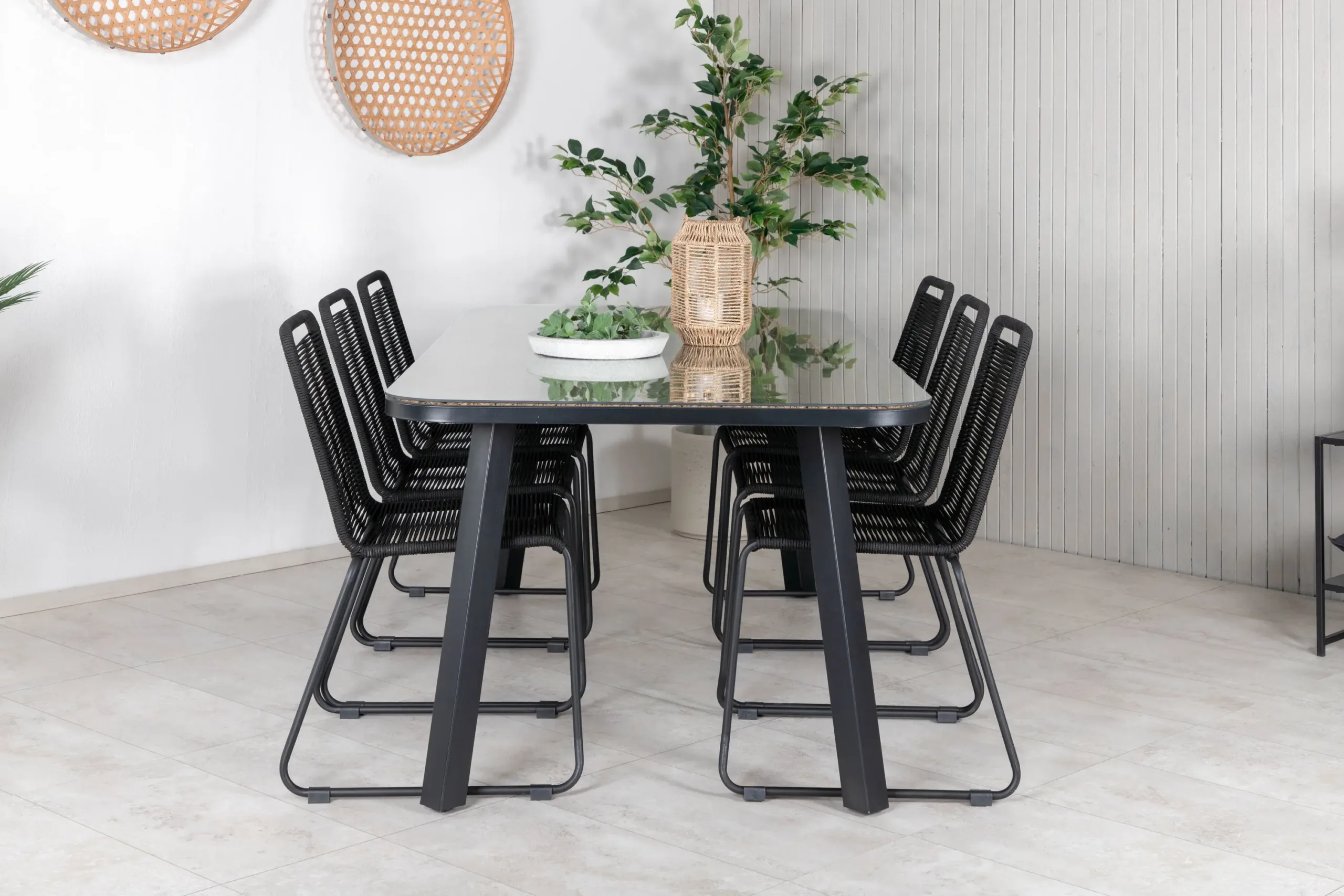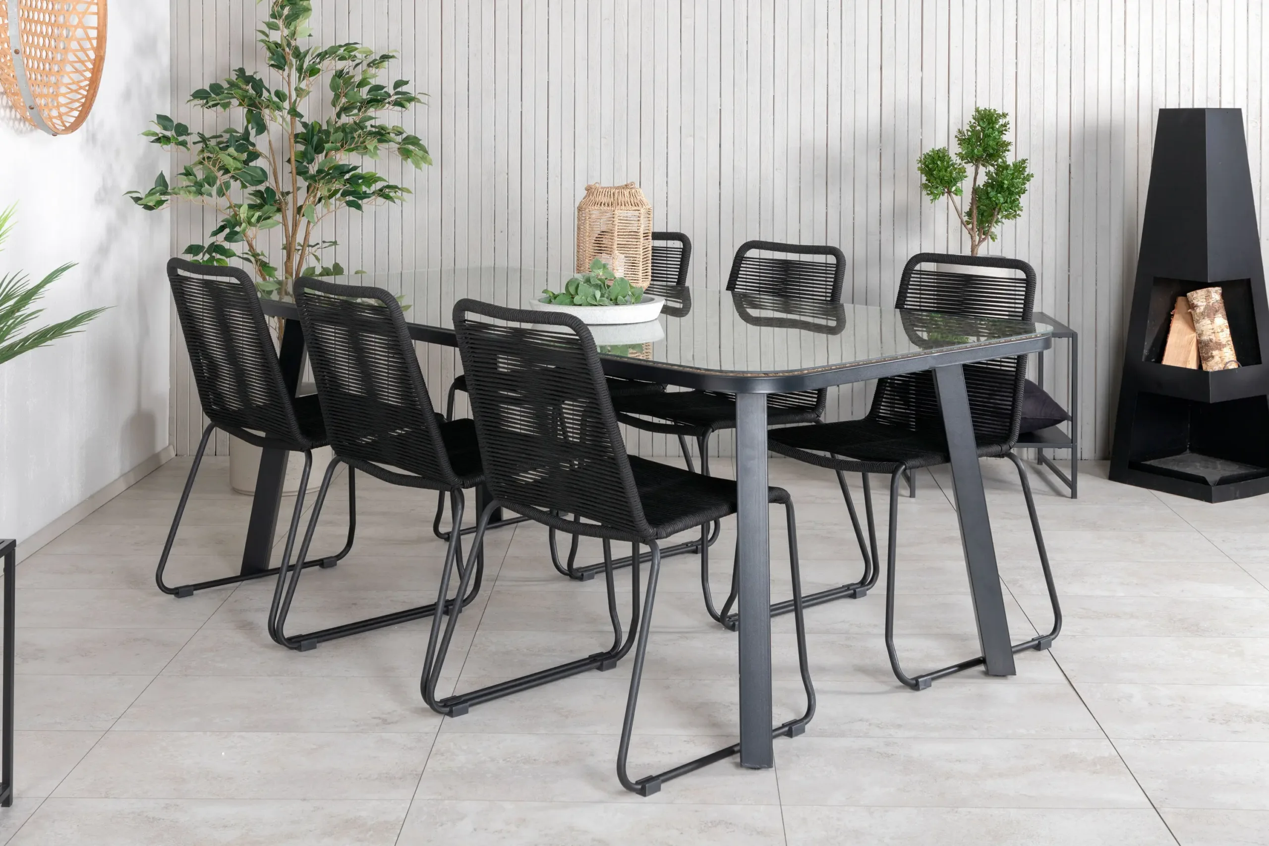 Paola õuesöögikomplekt on suurepärane valik neile, kes soovivad lisada oma terrassile või aeda nii hubasust kui ka modernset joont. Komplekti kuulub ruumikas ristkülikukujuline must metallist õuesöögilaud ning kuus mugavat Lindos sarja virnastatavat tooli, mille minimalistlik disain sobitub ideaalselt põhjamaise kodu väliruumidesse.