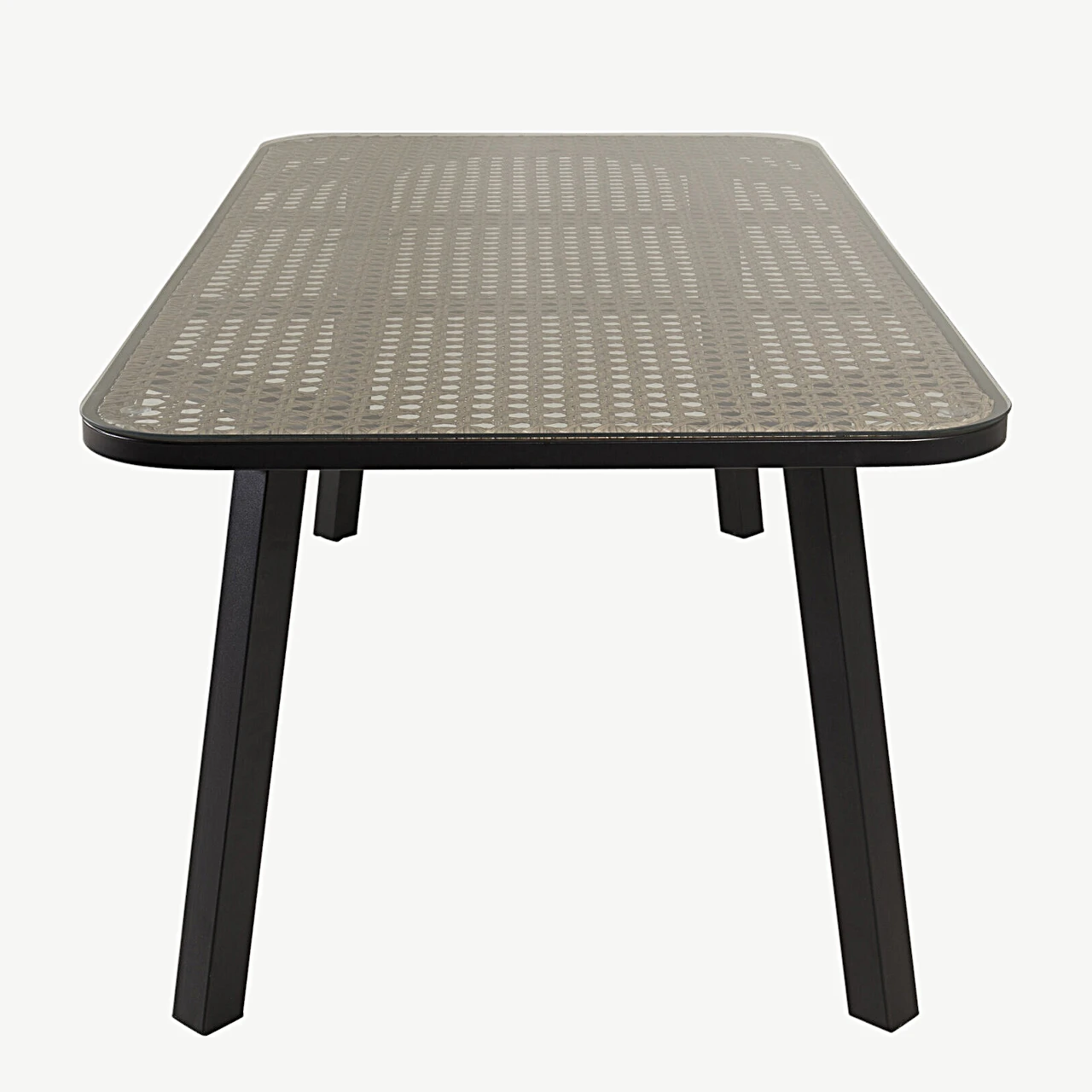 Paola klaasist aialaud toob sinu õuealale modernse ja puhta Skandinaavia disaini. Elegantne ristkülikukujuline laud ühendab mustast terasest kergelt väljapoole kaldu lauajalad ning liivakarva palmikviimistlusega (wicker) karastatud klaaspinna, mis annab igale söögikorrale isikupära ja valgust. Tänu läbimõeldud disainile sobib see klaasist aialaud suurepäraselt nii igapäevaseks kasutamiseks kui ka pidulikeks hetkedeks pere ja sõpradega.