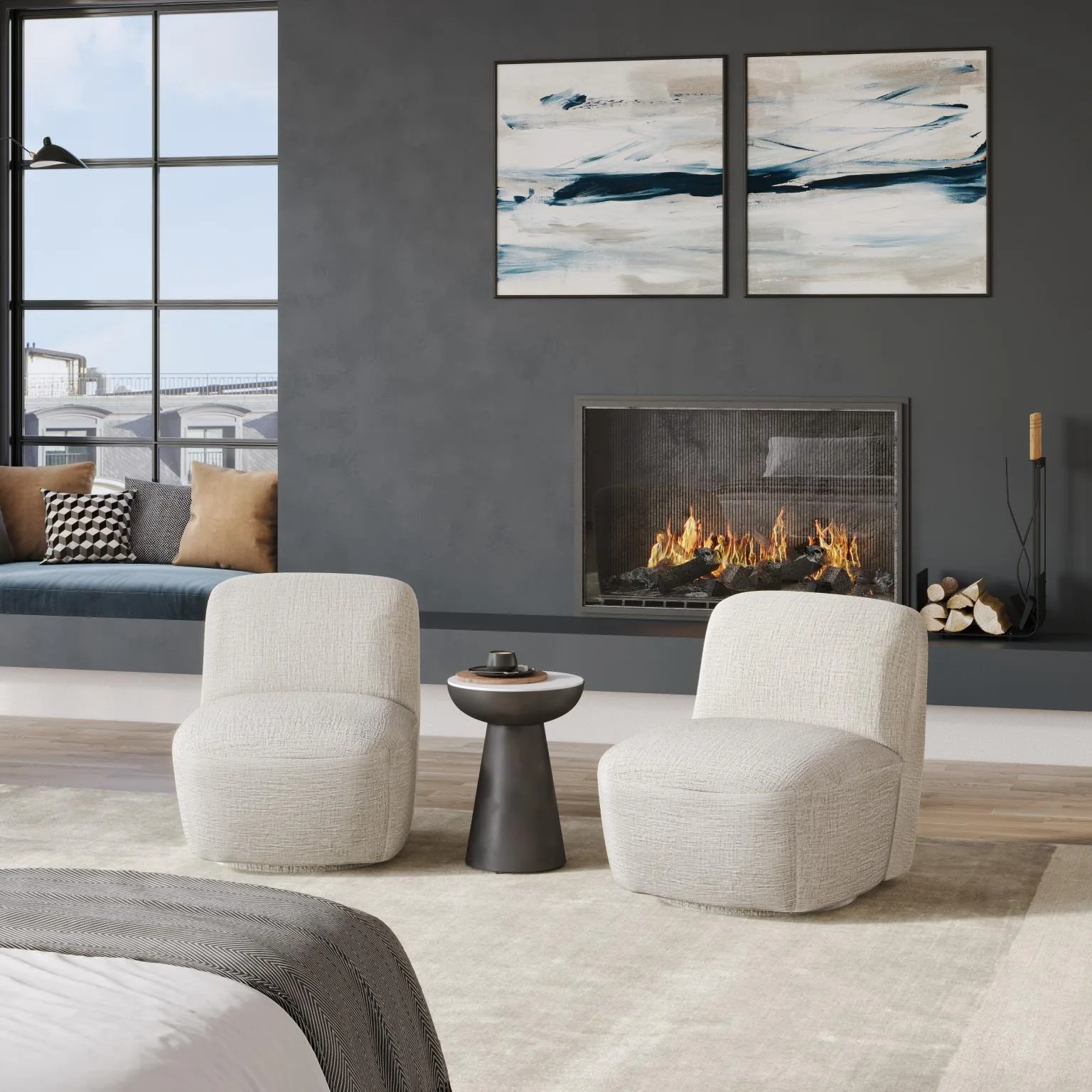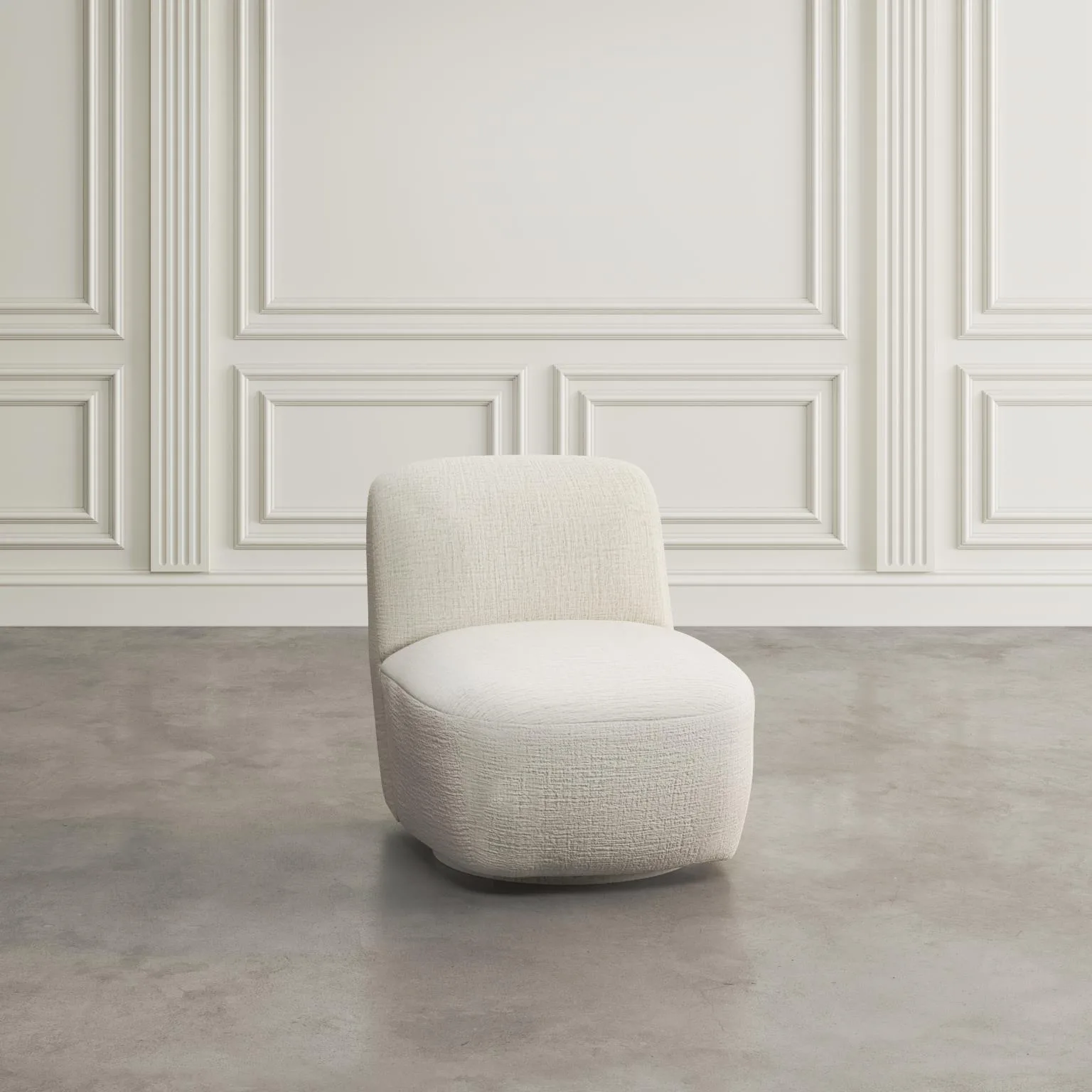 Leith LET74W polsterdatud pöördtool elutuppa. See elegantne tool on kaetud pärlvalge kangaga, mis lisab igasse elutuppa stiili ja mugavust. Mööbli lihtne vorm, mis tugineb moekatele ümaratele kujudele, rikastab iga interjööri.