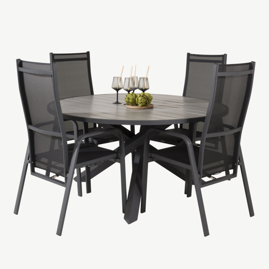- Komplekti kuulub: Ümmargune laud (⌀140 cm) ja neli reguleeritava seljatoega Copacabana tooli