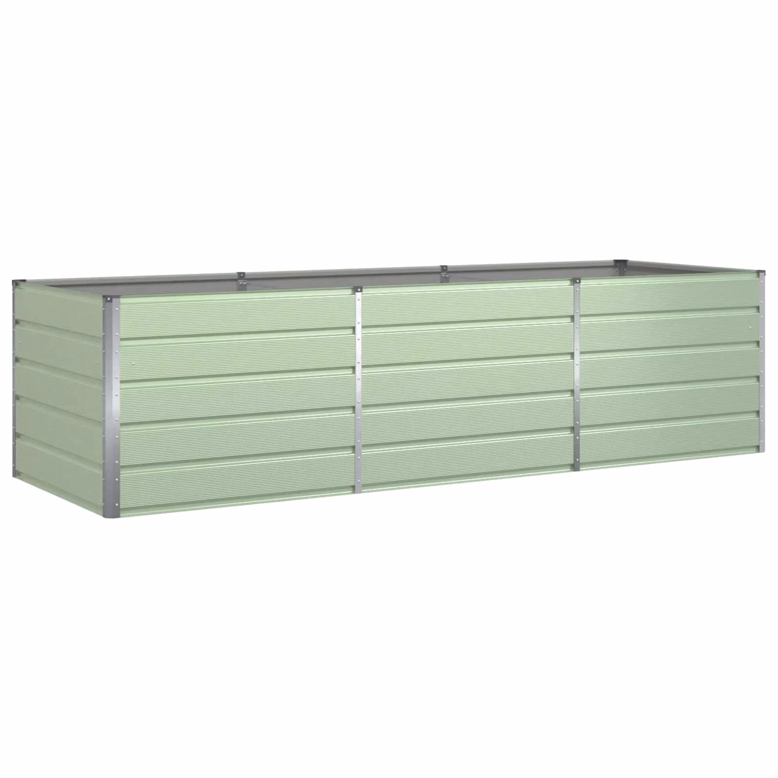 See suur pastellroheline tsingitud terasest taimekast loob korrastatud ja selge istutusala nii terrassil kui murul. 290 x 100 x 75 cm mõõtmetega kast pakub rohkelt ruumi lillede, maitsetaimede ja põõsaste kasvatamiseks, tuues rohelust ja värvi sinu välialale. Tugev tsingitud teras talub hästi vihma, päikest ja temperatuuri muutusi, sobides püsivaks kasutamiseks õues.
