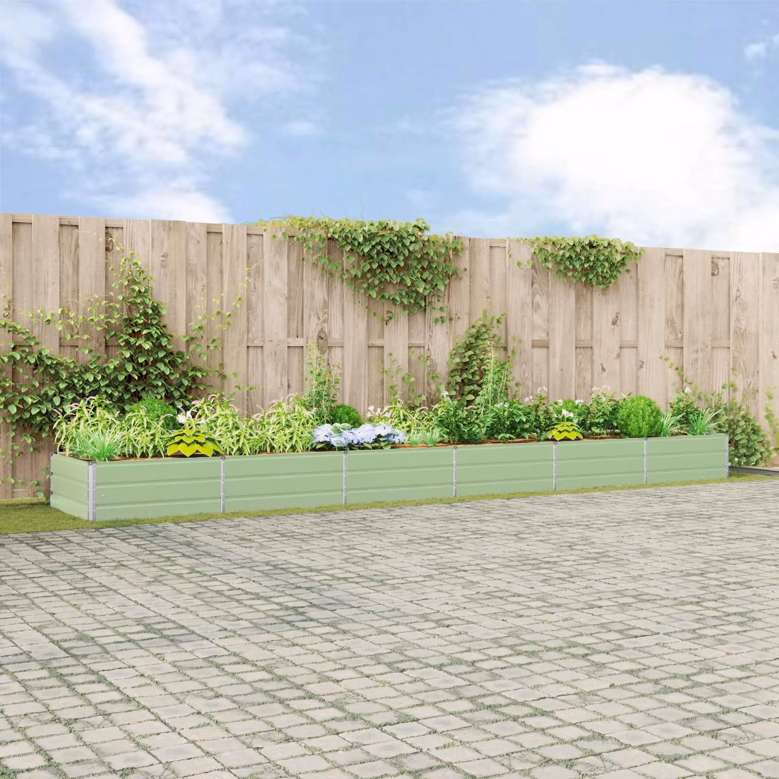 Kui soovid luua pika ja ühtlase istutusala minimaalse hooldusvajadusega, on see tsinkterasest taimekast praktiline lahendus. Vastupidav materjal, suur istutusruum ja tagasihoidlik pastellroheline toon aitavad kujundada korrastatud ning kauakestva väliala nii koduaias kui terrassil.