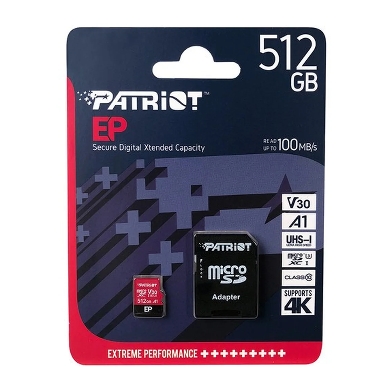 Patriot Memory 512GB microSDXC mälukaart adapteriga – usaldusväärne ja kiire andmesalvestus
