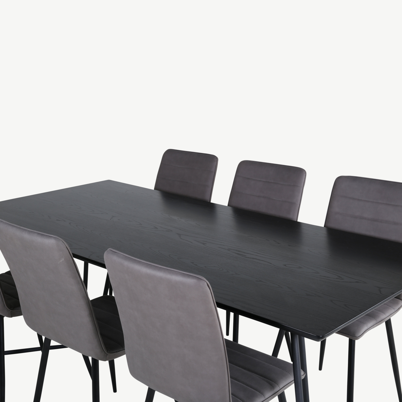 - Komplektis: üks must ristkülikukujuline söögilaud ja kuus Windu söögitooli.