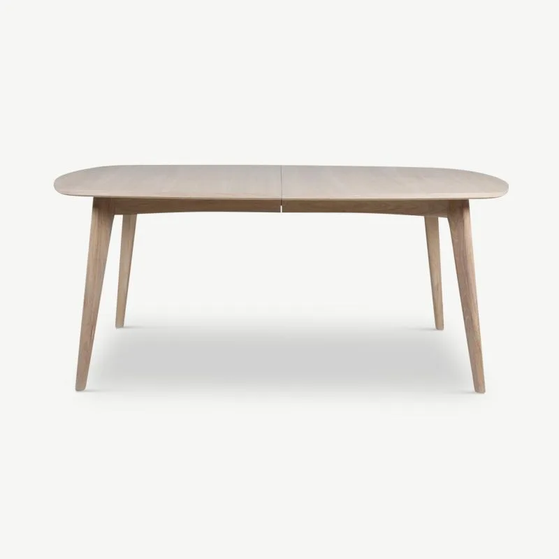 Pikendatav ristkülikukujuline söögilaud Abby toob põhjamaisest elegantsi aktsente oma hele tamme viimistluse ja valge pigmendiõliga töödeldud tamme spooniga pealispinnaga. Selle puhas disain ja ümarad nurgad loovad pehme silueti, muutes selle mitmekülgseks keskpunktiks kaasaegsetes söögitubades.