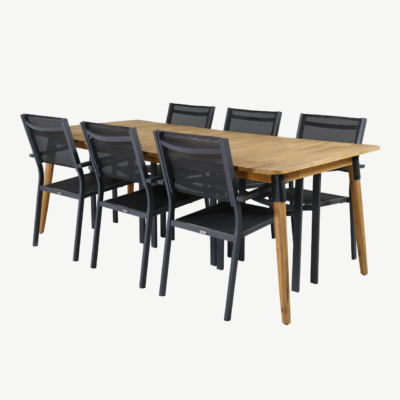 Panama söögikomplekt sobib suurepäraselt kaasaegsesse aeda või terrassile, rõhutades ruumi isikupäraga. Tiigipuidu naturaalne toon ja mustad detailid on lihtsalt kombineeritavad teiste õuemööbliga ning loovad ruumikuse ja harmoonia.