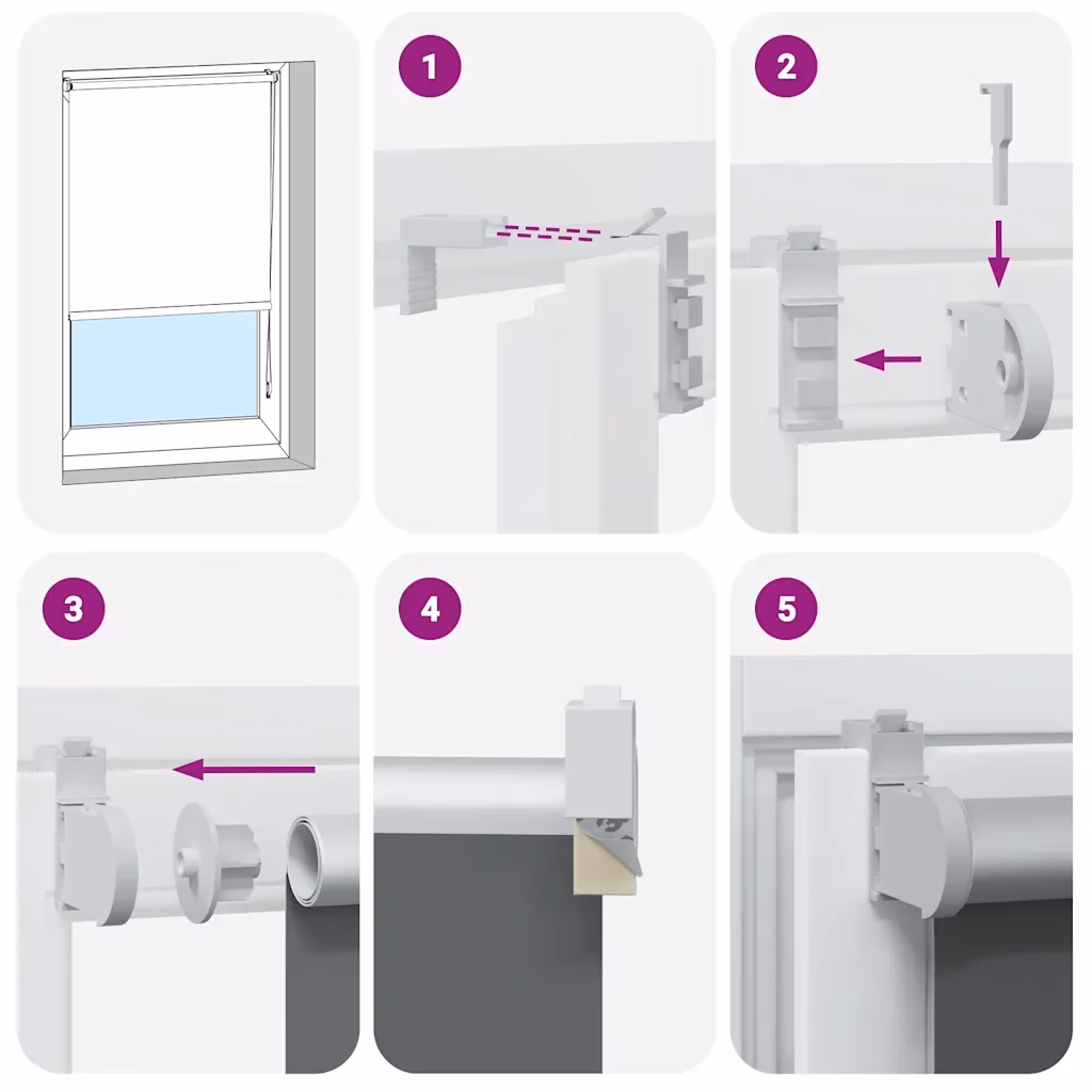 - Kaks paigaldusviisi annavad võimaluse valida kruviga seina või lae külge kinnituse või puurimiseta kinnitusklambrid aknaraamile.