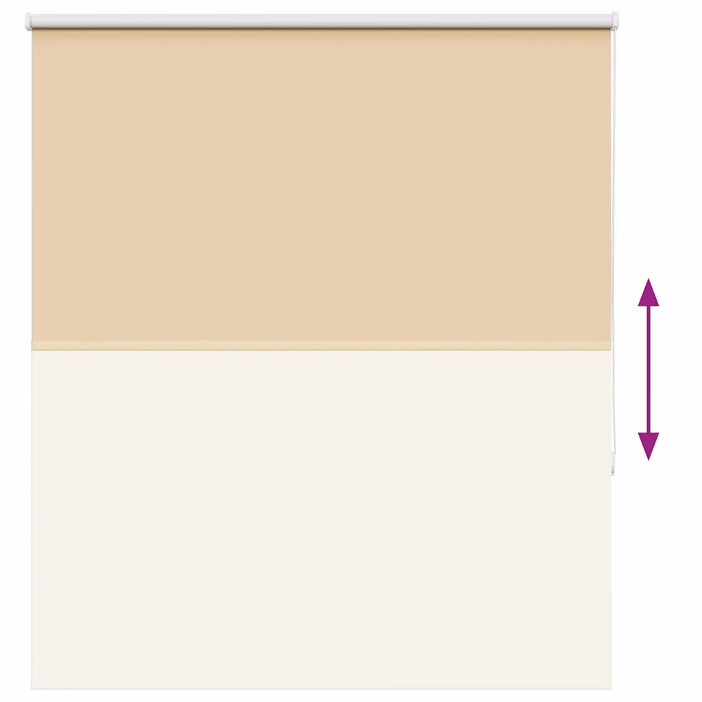 - Beež pimendav ruloo 140 x 150 cm mõõduga, 100% polüestrist kangaga.