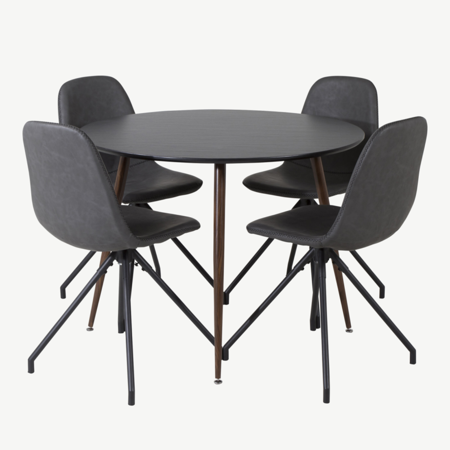 Stiilne must ümmargune söögilauakomplekt Plaza