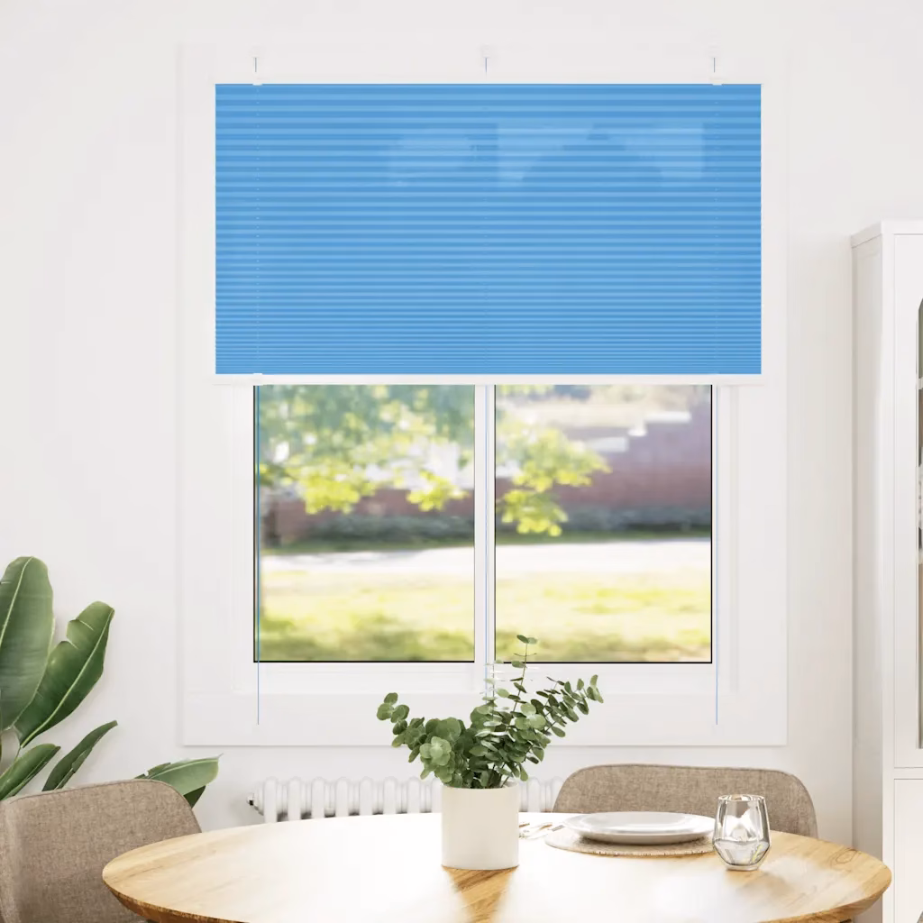 See sinine plisseeritud ruloo suurusega 105 x 150 cm aitab luua toas hubase ja privaatse õhkkonna, kaitstes samal ajal pimestava päikese eest. Mitte täielikult pimendav, kuid läbipaistmatu polüesterkangas laseb valgust pehmelt läbi, nii et ruum jääb valgusküllaseks, kuid uudishimulikud pilgud jäävad väljapoole.