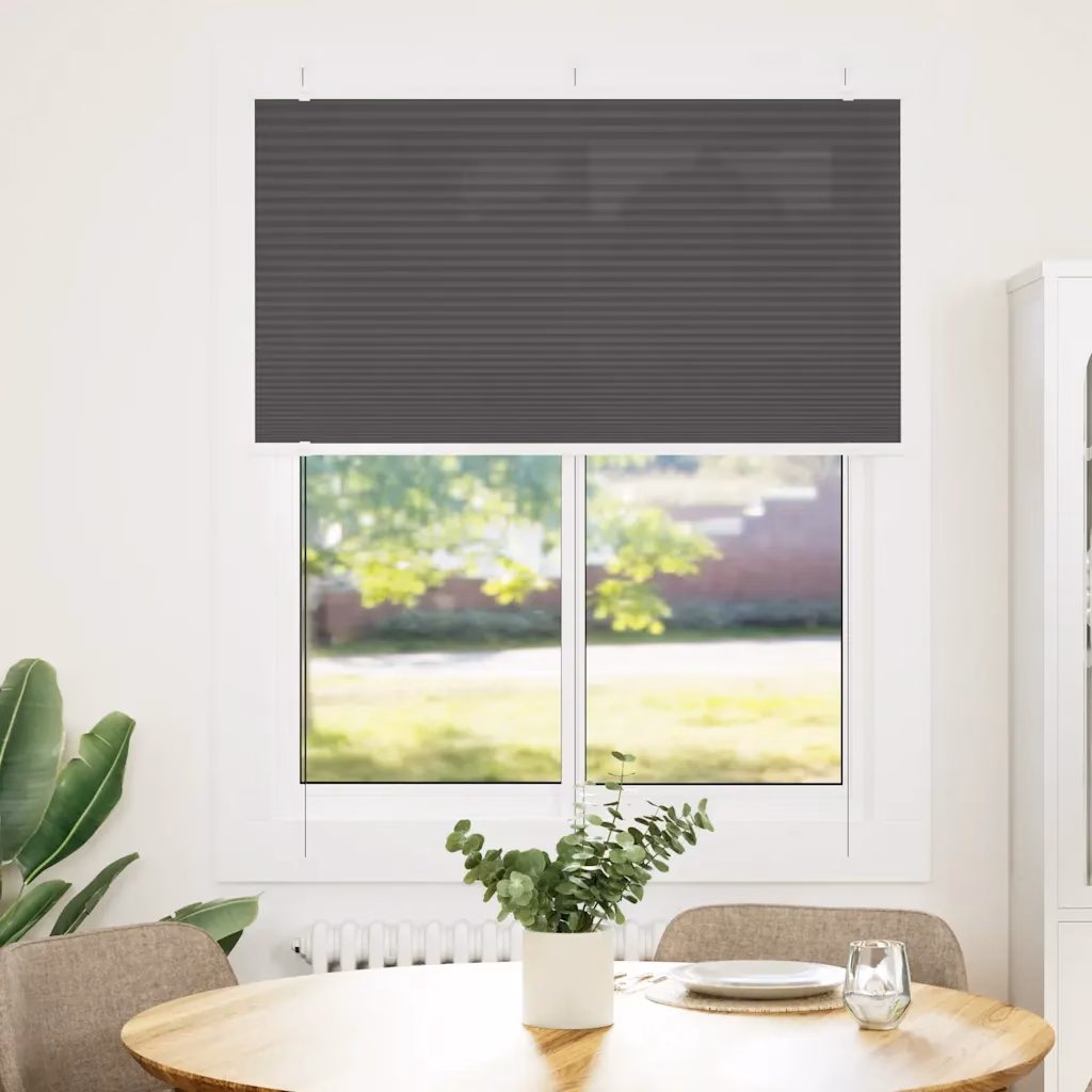 Privaatsust ja päikesekaitset pakkuv must plisseeritud ruloo