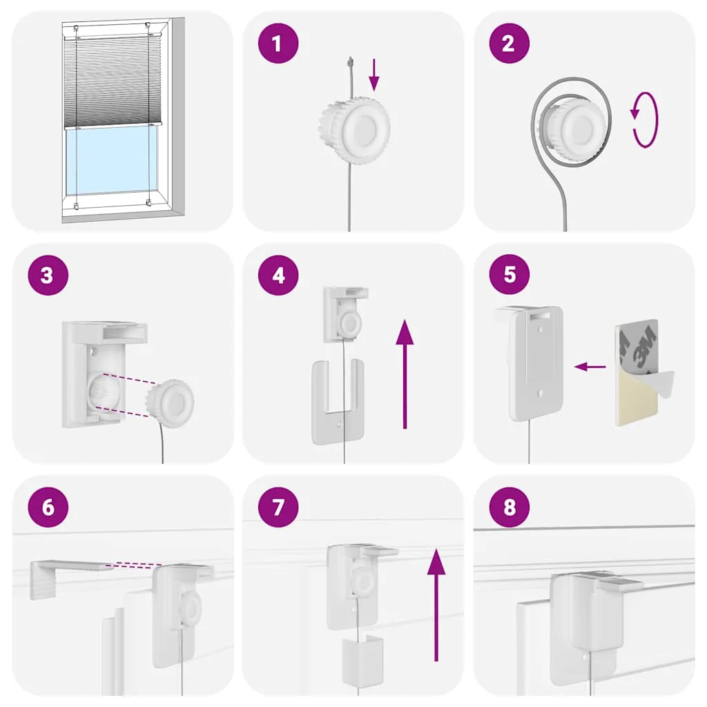 Suurendage oma toa stiili ja funktsionaalsust selle plisseeritud rulooga, pakkudes privaatsust ja elegantsi. Vastupidav ja vähe hooldust: 100% polüestrist valmistatud volditud ruloo on ehitatud kestma ja kulumiskindlalt.Privaatsus ja päikesekaitse: ruloo ei ole läbipaistev, kuid ka mitte täielikult tumene, pakkudes oma volditud kangaga optimaalset privaatsust ja kaitset pimestamise eest.Kaks monteerimisviisi: Plisseeritud ruloo saate kinnitada seina või akna külge kruvidega või ilma puurimiseta, kasutades kinnitusklambreid, olenevalt teie vajadustest.Elegantne disain: tänu oma elegantsele ja kaasaegsele mustriga disainile täiendab see volditud ruloo vaevata mitmesuguseid ruumikujundusi. Saate seda kasutada elutoas, magamistoas, kontoris ja nii edasi. Hoiatus. Hoidke juhtmeid väikelastele kättesaamatus kohas. Nöörid võivad lapse kaela ümber keerduda. Hea teada:Enne ruloode ostmist alustage aknaklaasi mõõtmisega. Lihtsalt sõbralik näpunäide: kangas on kogulaiusest veidi kitsam, kaasa arvatud klambrid.Veendumaks, et teie uued rulood pakuvad täielikku katvust, lisage tellitava materjali arvutamisel aknaklaasi laiusele 0,6 cm.