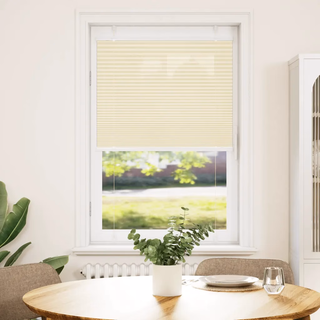 Kui soovite aknakatet, mis ühendab privaatsuse, päikesekaitse ja neutraalse disaini, on see kreemjasvalge plisseeritud ruloo praktiline lahendus. Kahe paigaldusviisi, vastupidava polüesterkanga ja täpsete mõõtudega sobib see hästi nii kodu- kui kontoriruumidesse.