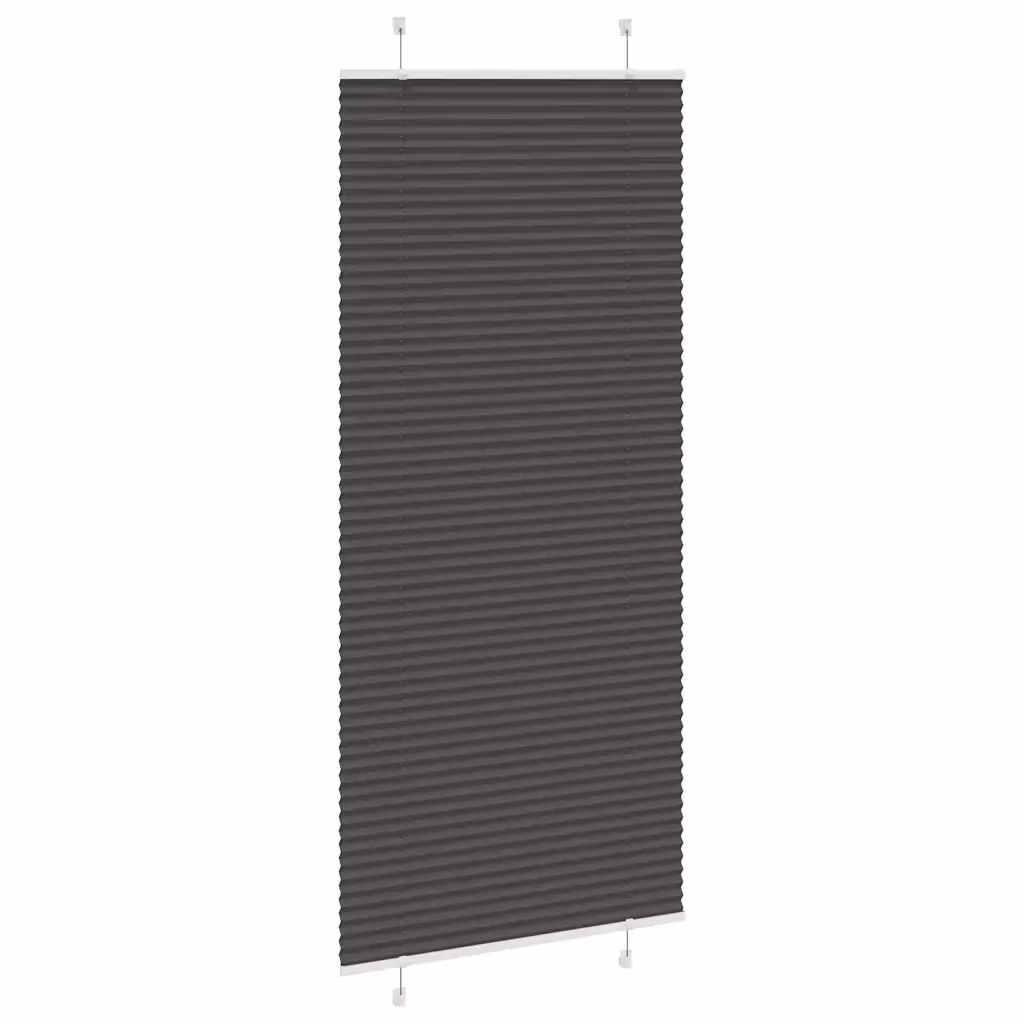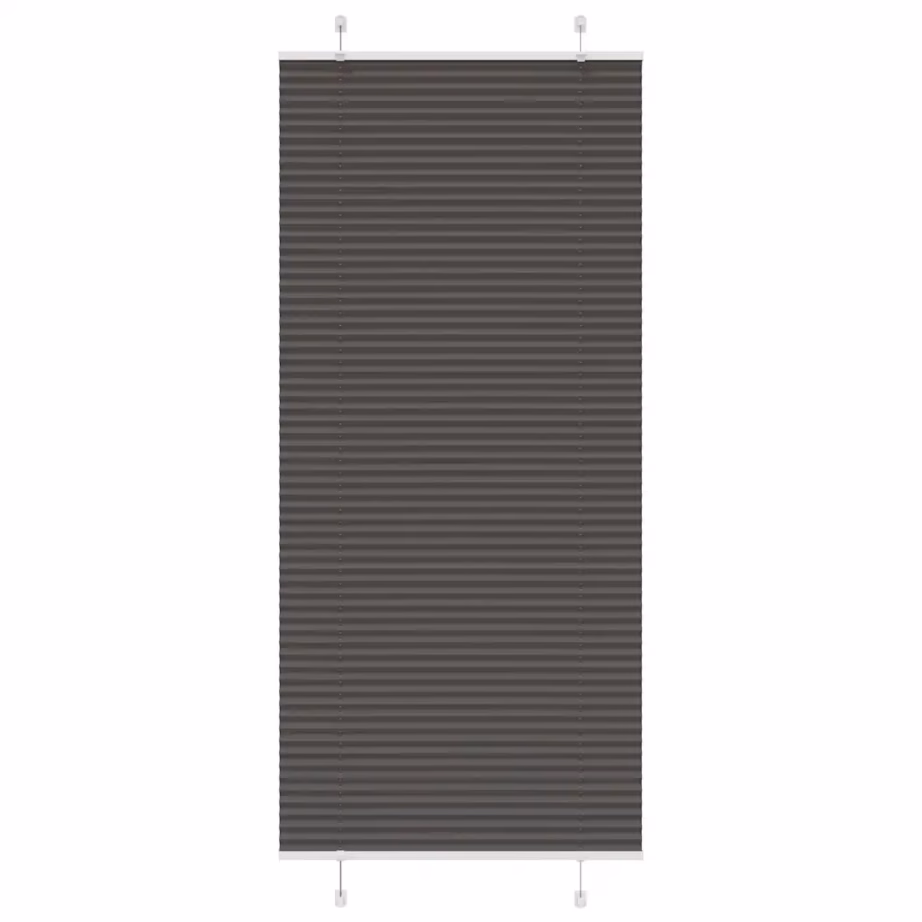 - Plisseeritud ruloo mõõdus 85 x 200 cm musta värvi polüesterkangaga