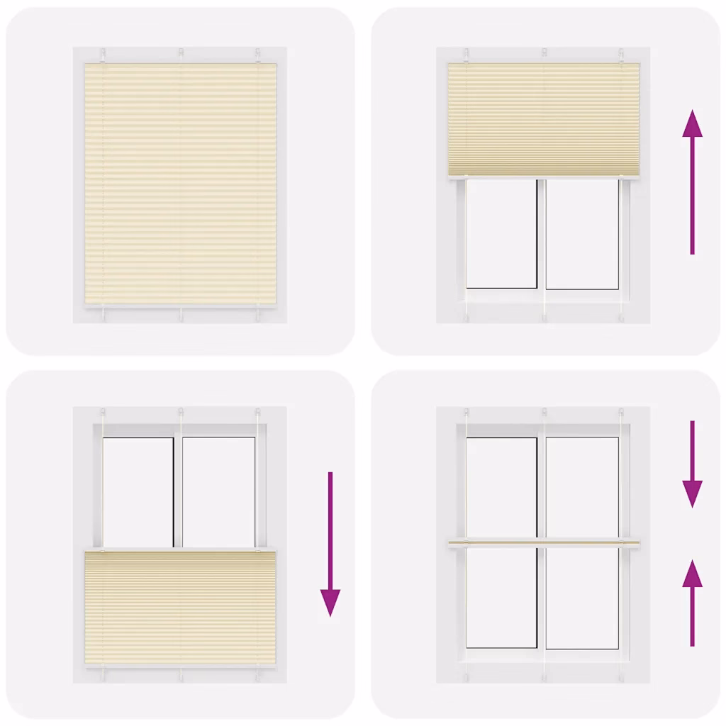 - Plisseeritud ruloo mõõduga 105 x 150 cm, kreemjasvalge