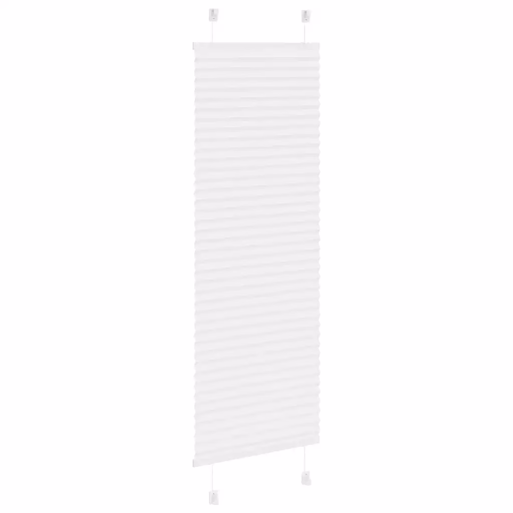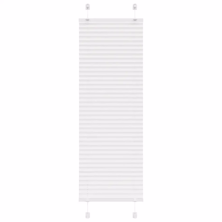 See valge plisseeritud ruloo mõõtudega 40 x 100 cm on praktiline lahendus akende katmiseks, kui soovite rohkem privaatsust ja vähem pimestamist. Volditud polüesterkangas laseb päevavalguse pehmelt läbi, kuid ei ole läbipaistev, nii et tuba jääb hubaselt valgeks ja samal ajal varjatuks.