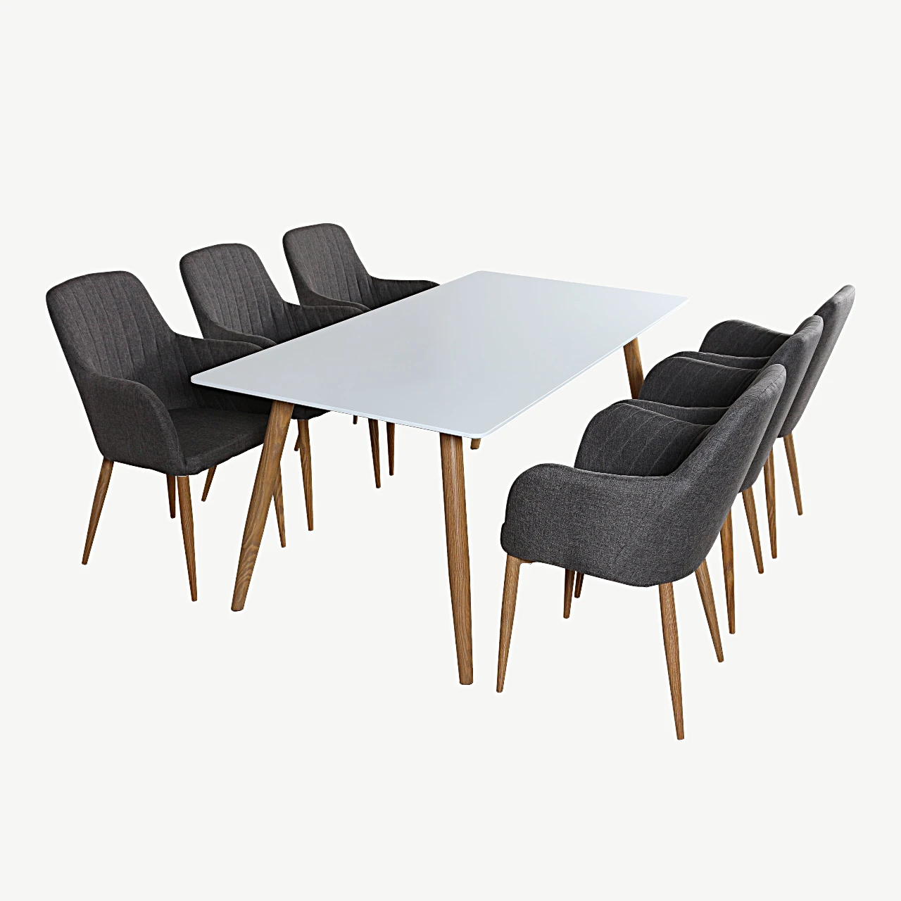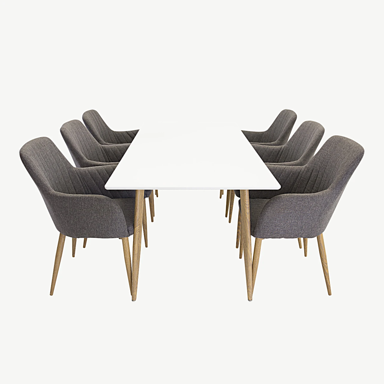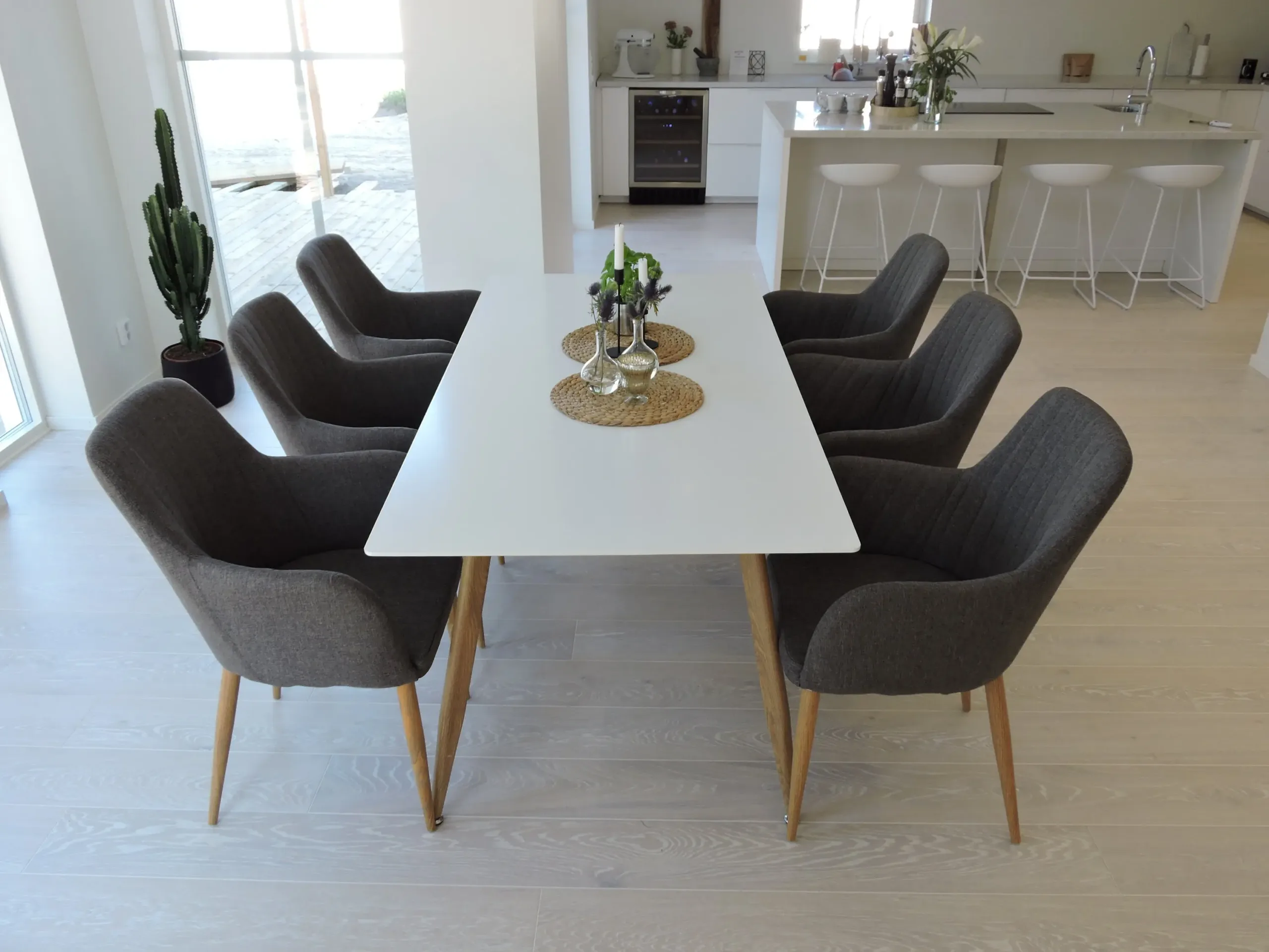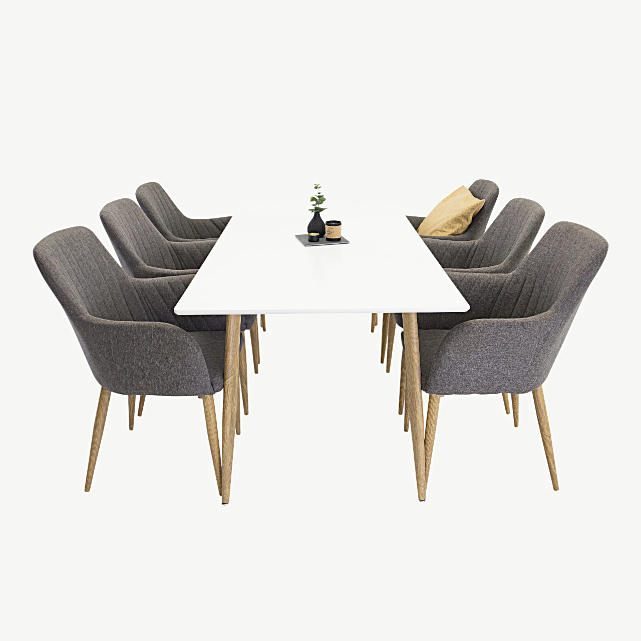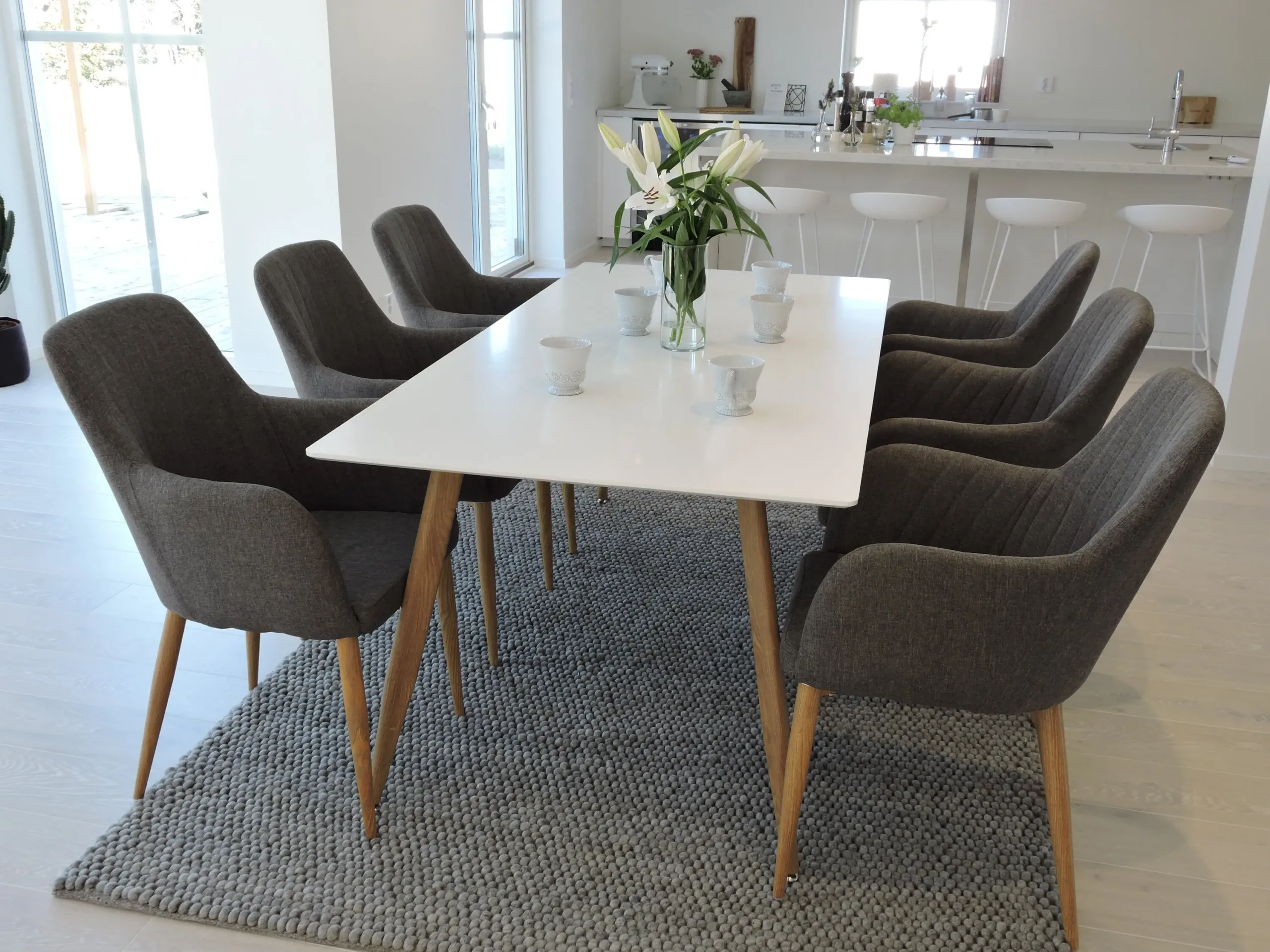 Polar ristkülikukujuline söögilauakomplekt on loodud neile, kes hindavad kaasaegset Skandinaavia disaini, kvaliteetseid materjale ja tõelist kasutusmugavust. See valge söögilauakomplekt tumehallide toolidega loob elegantse, tervikliku mulje ja sobitub ideaalselt nii avarasse söögituppa, moodsasse köögi–elutuppa kui avatud planeeringuga koju.