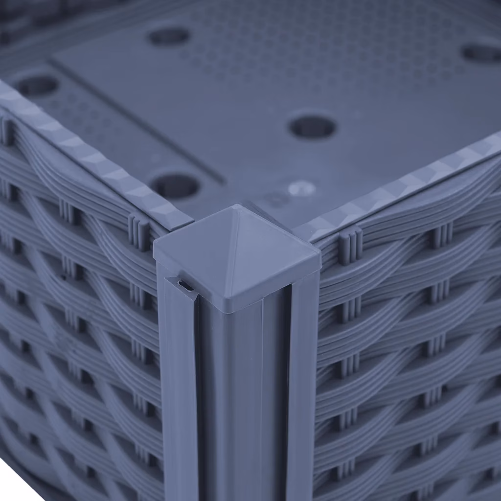 Kui otsite praktilist ja vastupidavat taimekasti, mis sobib ka väiksematesse väliruumidesse, on see mudel hea valik. Kompaktsed mõõdud, sügav istutusruum ja neutraalne sinakashall toon aitavad luua korrastatud ning silmapaistva istutusala nii aias kui rõdul.