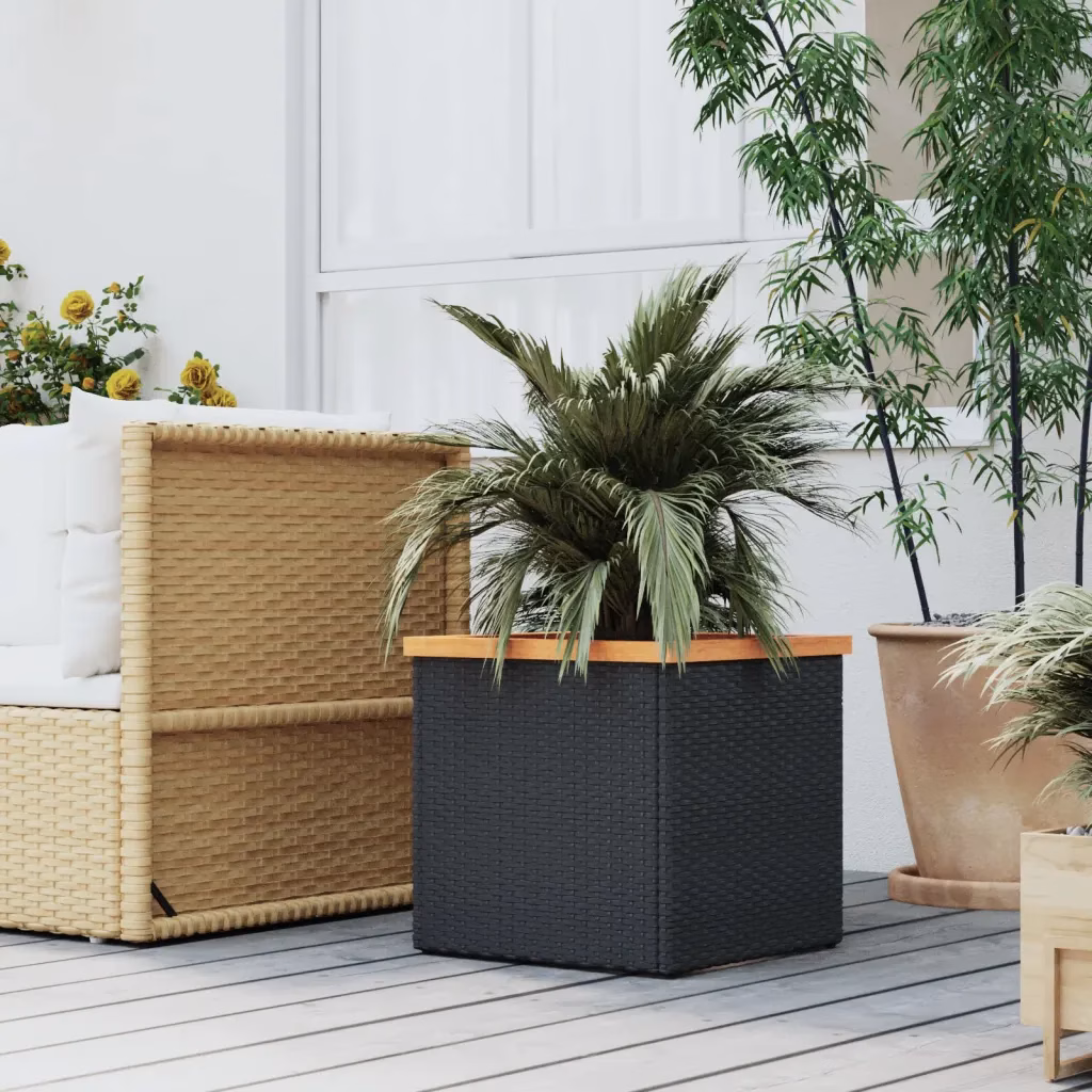 See ilmastikukindel polürotangist taimekast aitab sul mugavalt ja stiilselt kaunistada oma aeda, rõdu või verandat. Akaatsiapuidust pealmine raam loob sooja kontrasti musta punutisega ja sobitub kergesti erineva aiamööbliga. Tänu läbimõeldud konstruktsioonile sobib taimekast kasutamiseks nii sise- kui välistingimustes.