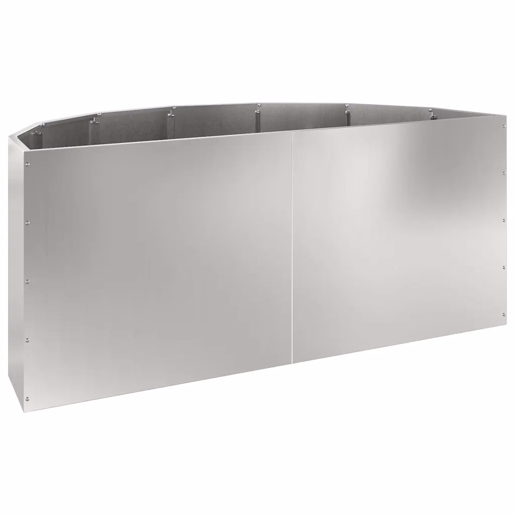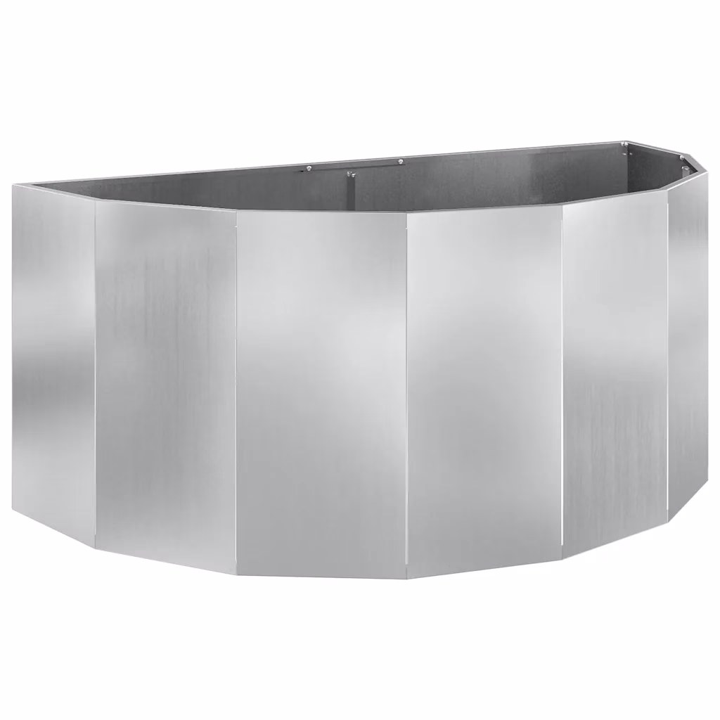See poolringikujuline hõbedane taimekast annab aiale, terrassile või rõdule kaasaegse ilme ning loob selge fookuspunkti. Vastupidavast tsingitud terasest konstruktsioon talub hästi välitingimusi ja toob esile sinu taimed, aidates luua väljendusrikkaid haljastuslahendusi. 120 x 60 x 50 cm mõõdud pakuvad piisavalt ruumi dekoratiiv-, maitse- või hooajataimede istutamiseks.
